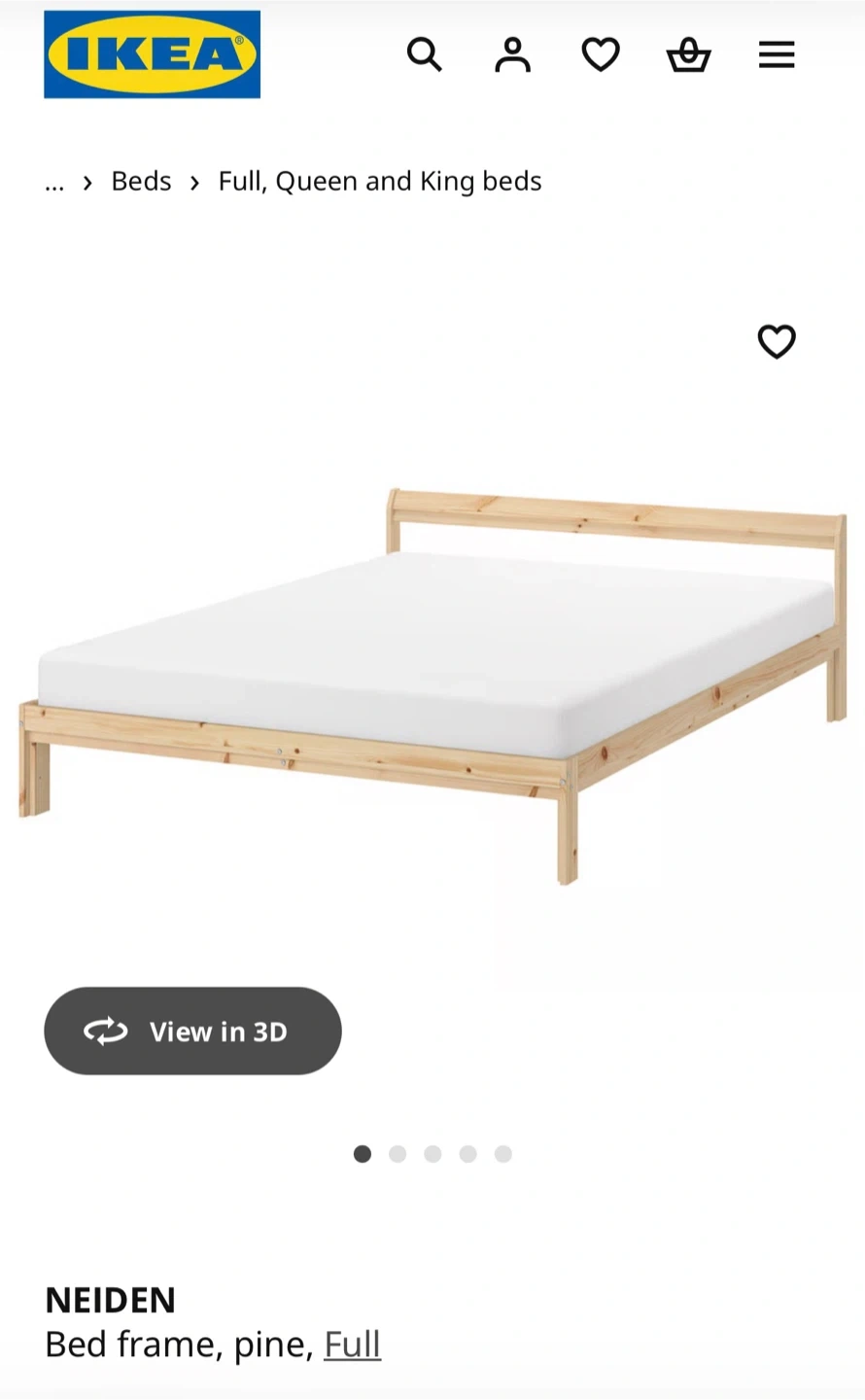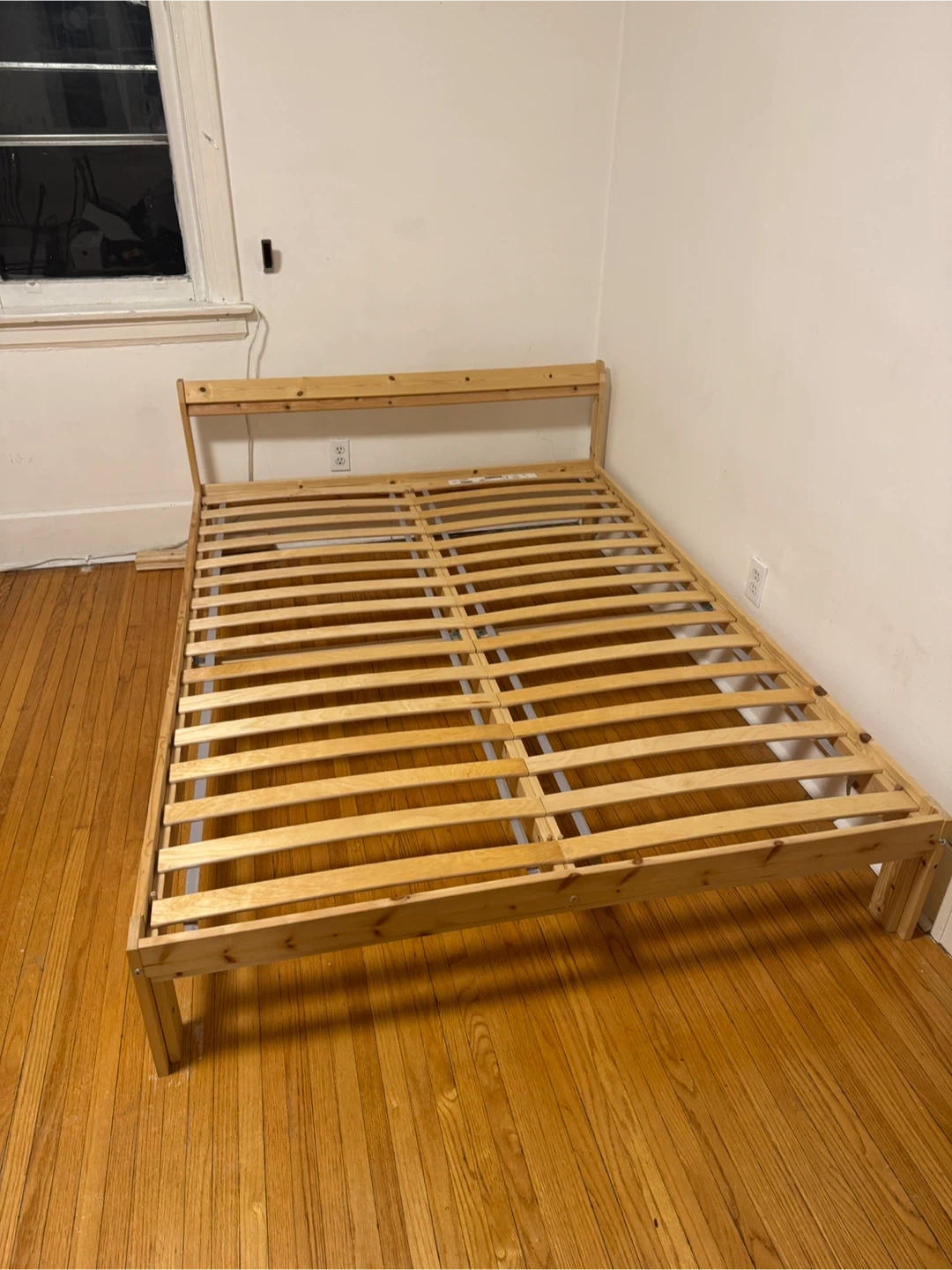 Slatted full/double bed frame made of pine wood. Originally ikea, not sure exactly which one but resembles the one in the photo. No issues with it, although it has been used for two years.