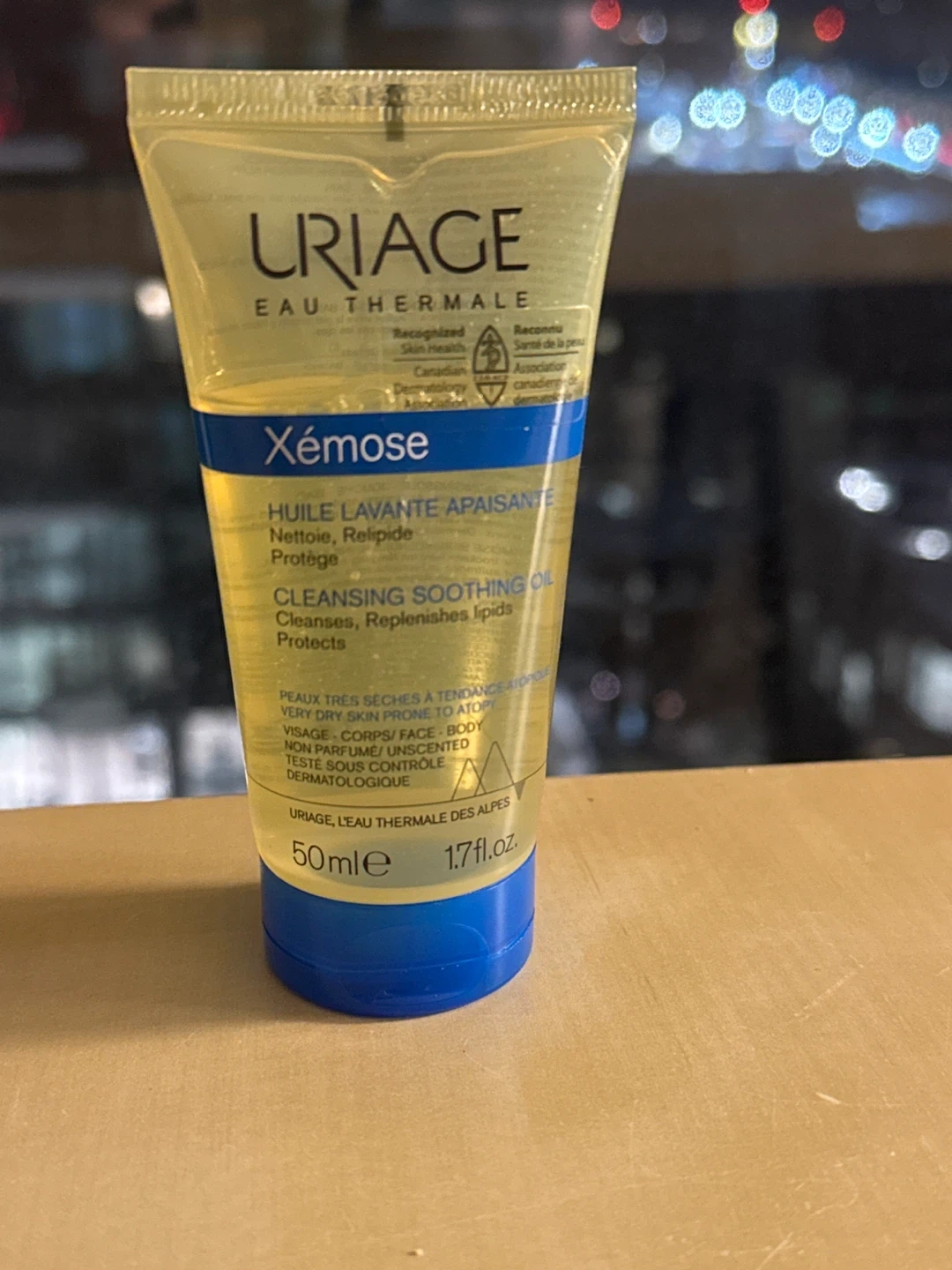 This is Uriage Xémose Cleansing Soothing Oil. It's designed for very dry skin prone to atopy. It cleanses, replenishes lipids, and protects the skin barrier. It's non-perfumed and unscented. (Contains 50 ml and is unused)