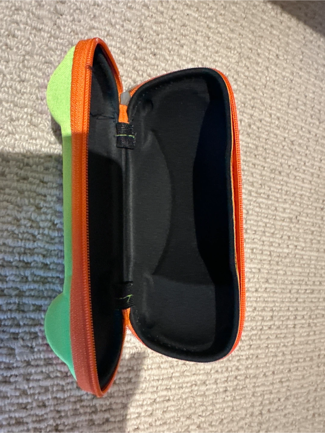 This fun glasses case is shaped like a car, perfect for kids! It's made of a soft, durable material with a zippered closure to keep glasses safe. Great for protecting eyeglasses or sunglasses.