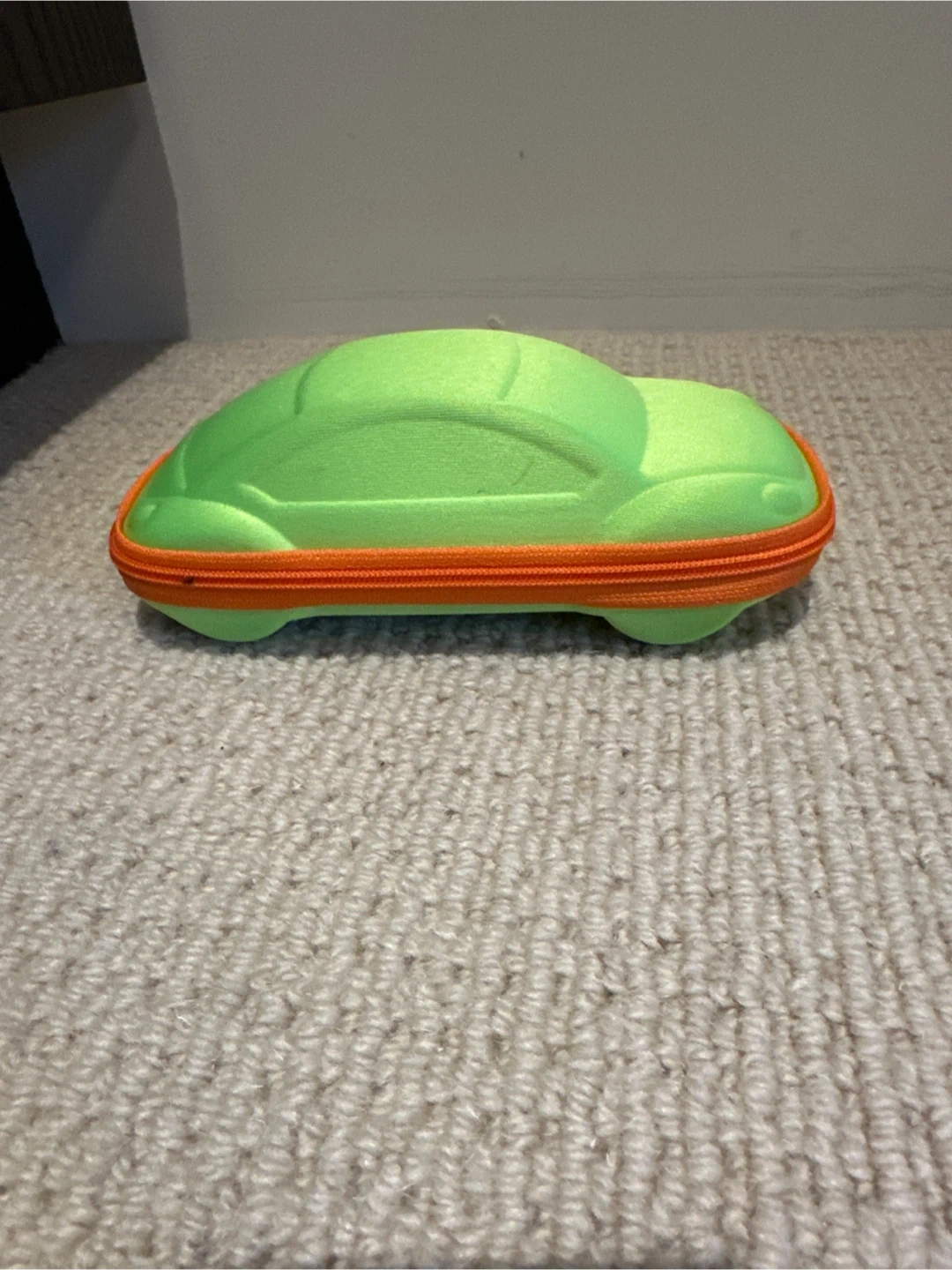 This fun glasses case is shaped like a car, perfect for kids! It's made of a soft, durable material with a zippered closure to keep glasses safe. Great for protecting eyeglasses or sunglasses.