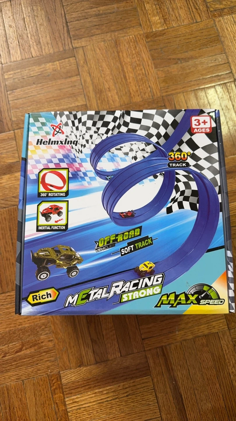 This Helmxing toy set features a 360 track with off-road vehicles. It includes an inertial function and 360 rotating capabilities. Recommended for ages 3 and up!