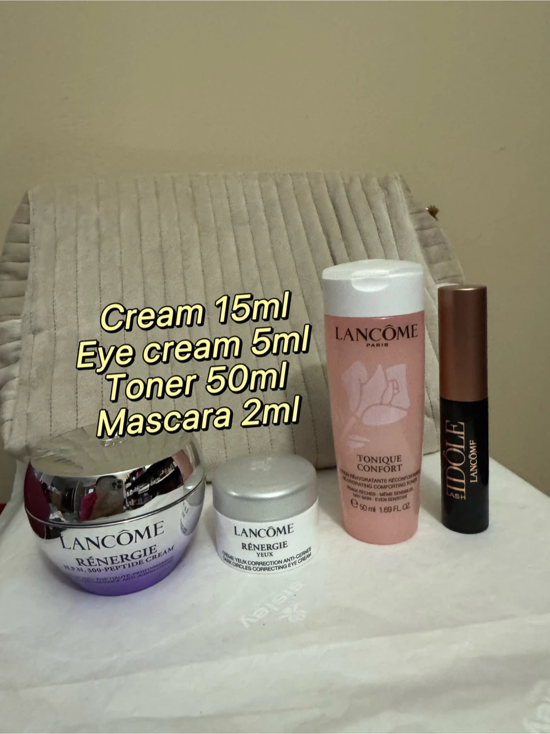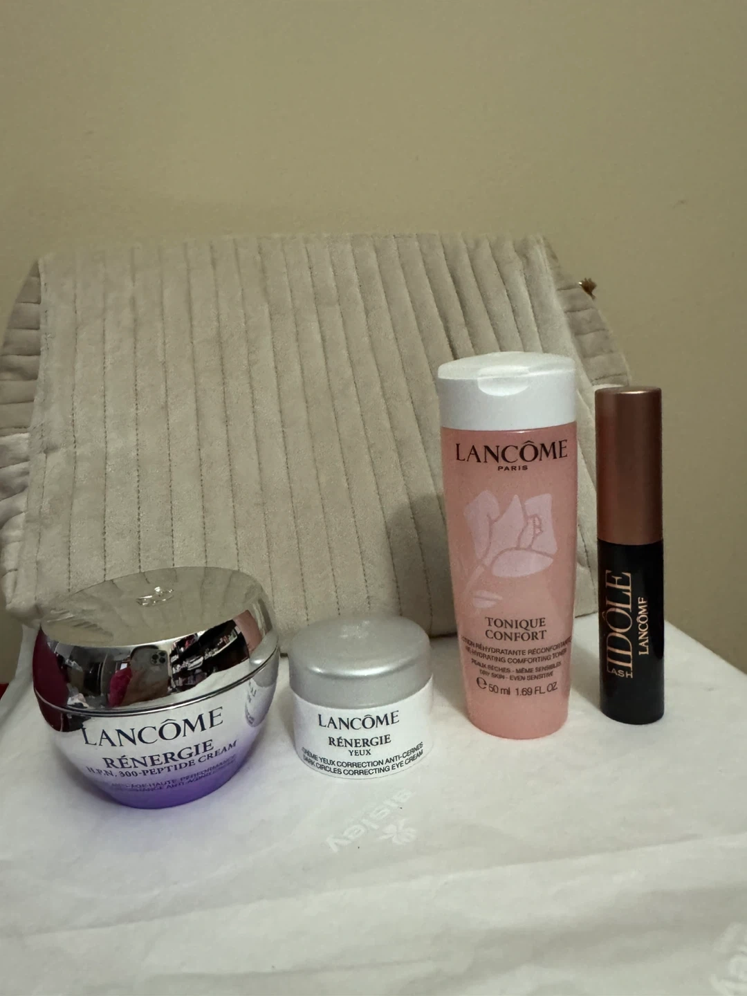 This Lancôme set includes Renergie Lift-Action 50-ml Face Cream, Renergie Yeux Anti-Wrinkle Correcting Eye Cream, and Tonique Confort Hydrating Toner. It also comes with a mini Idole mascara. All travel-sized products are perfect for trying out or for on-the-go touch-ups!