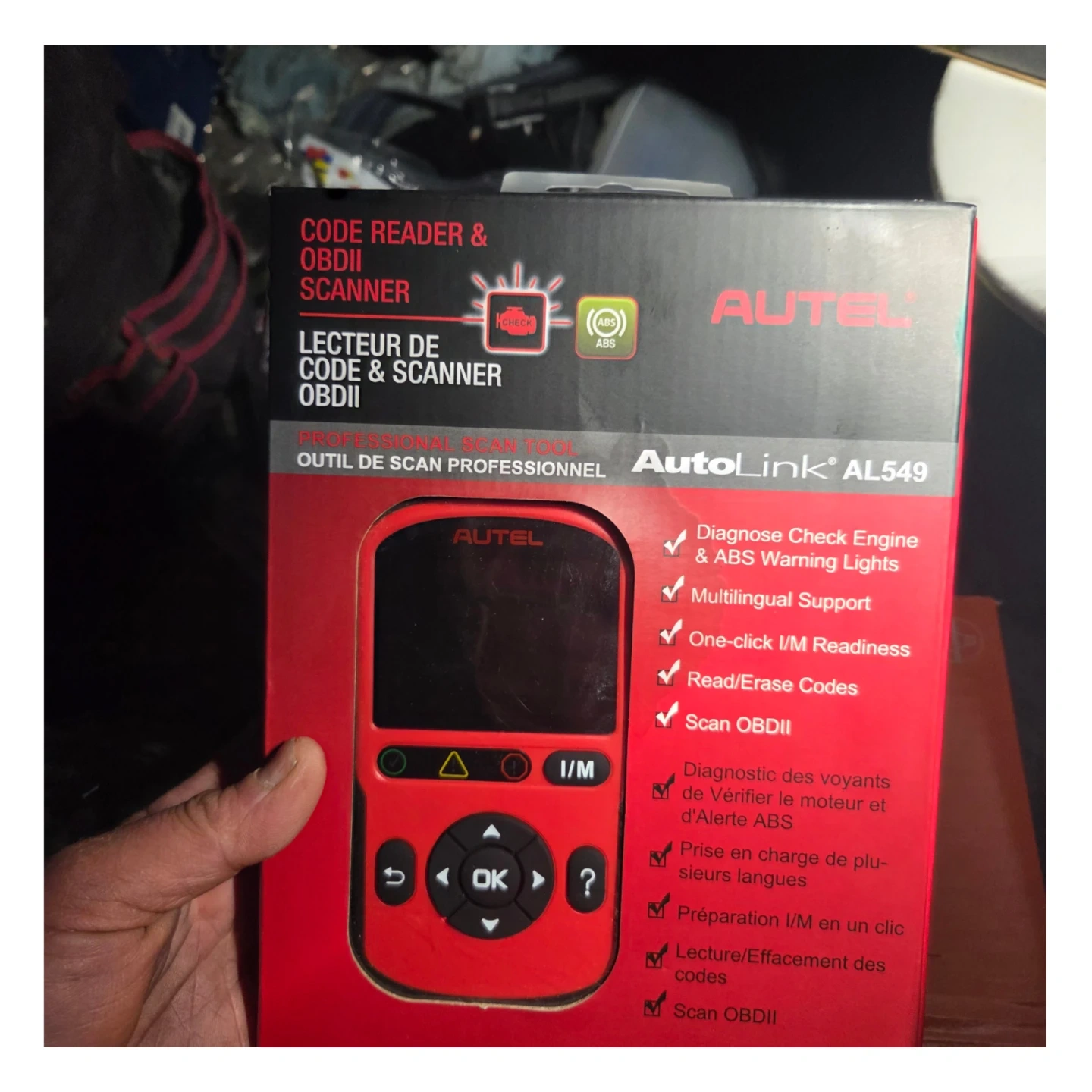 This is an Autel AutoLink AL549 code reader and OBDII scanner. It's designed to diagnose check engine and ABS warning lights. The scanner offers multilingual support and can read/erase codes.