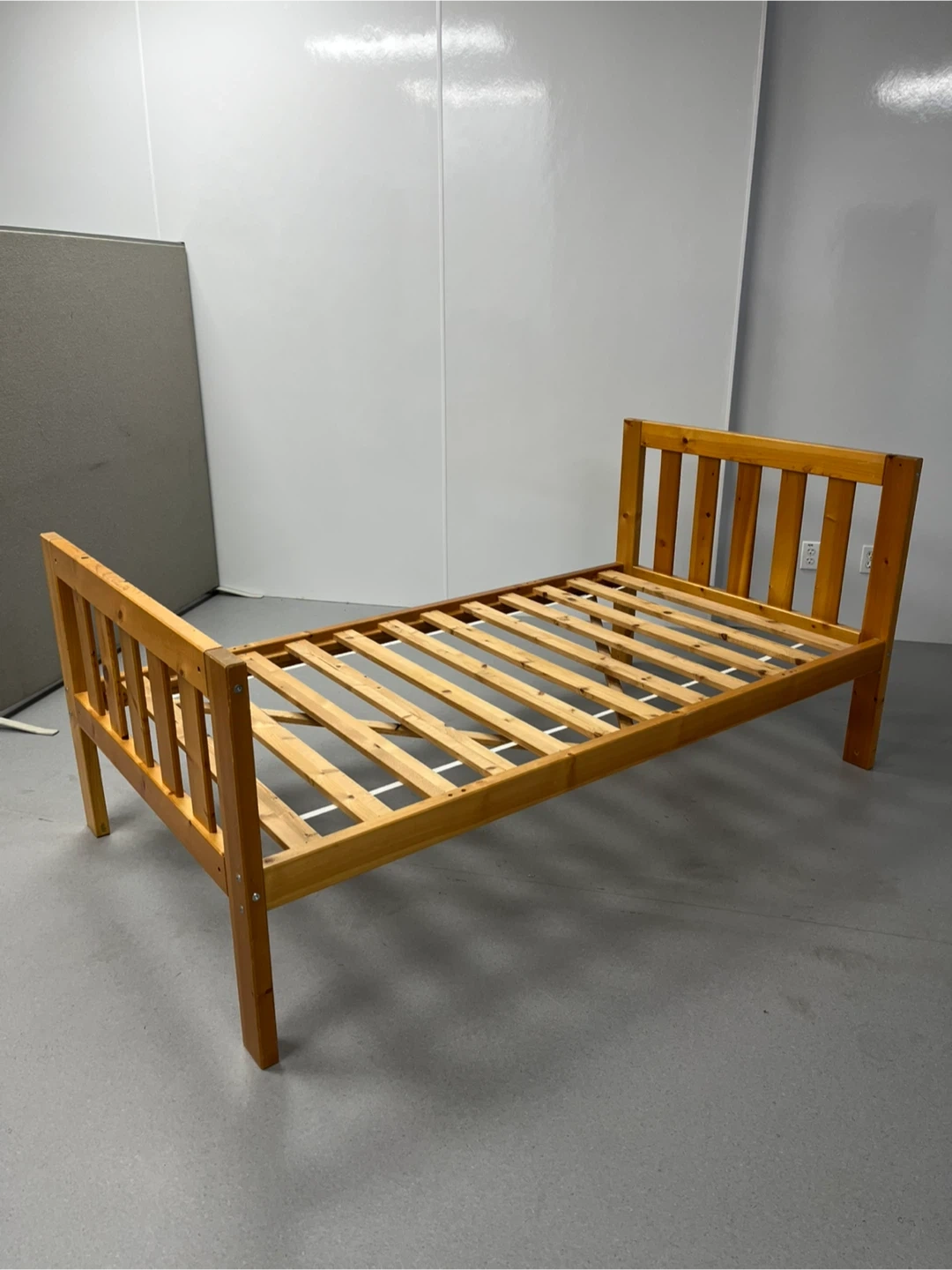 • Has modular (detachable) legs. When the lower sections of the legs are installed, the bed functions as a raised loft bed (with space underneath). When they are removed, the upper portion can be used independently as a single bed placed directly on the floor.