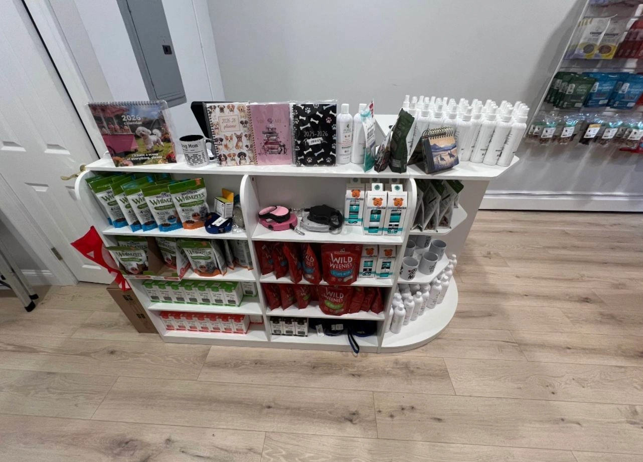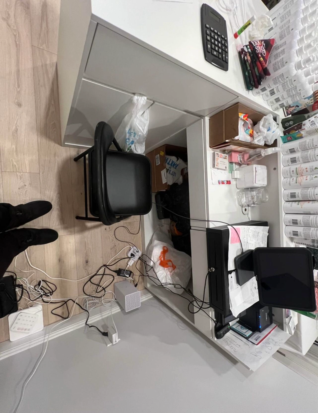 Modern Reception Cashier Desk With Open Shelving