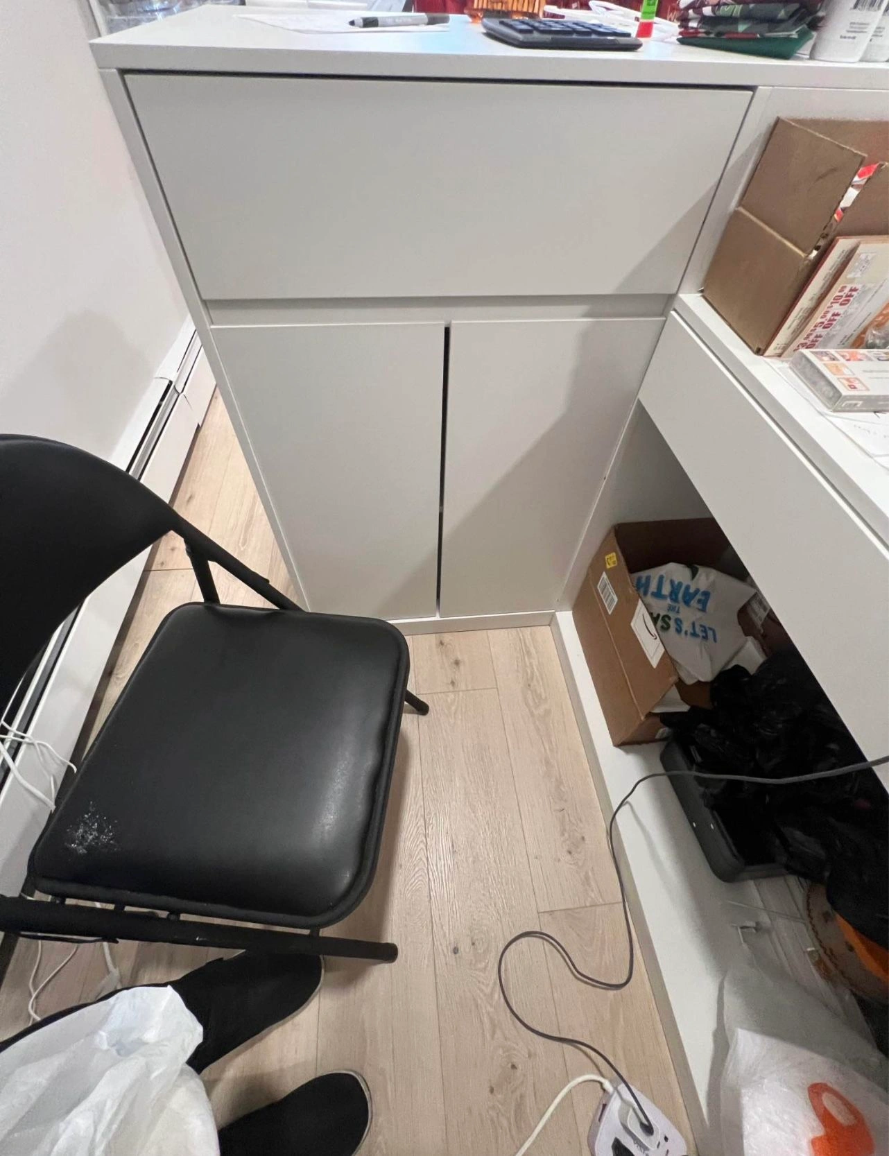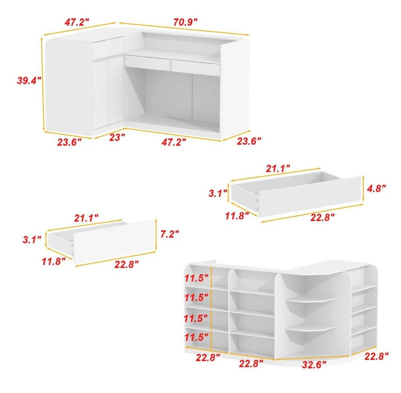 Product dimensions are listed in photo. Local Store Pickup only. Will be available for pickup anytime between January 25th - 28th. Material: Wood. Color: White. Type: Retail Display Reception Desk. Brand: Wayfair.