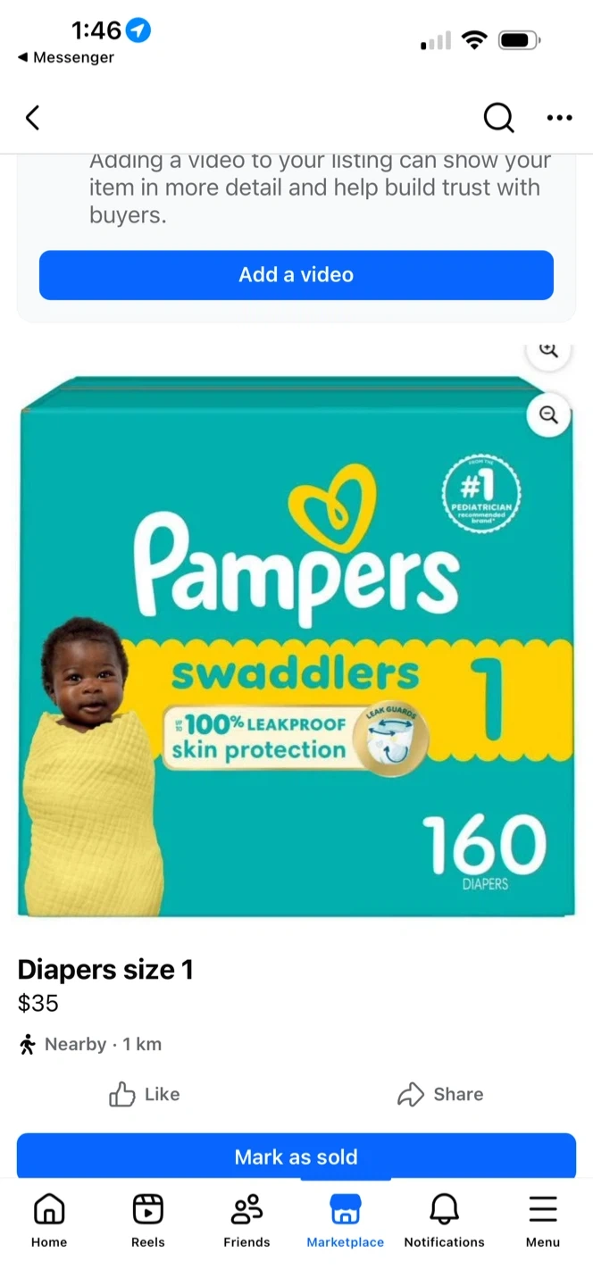 Pampers Swaddlers diapers in size 1. These diapers offer up to 100% leakproof skin protection. Includes 160 diapers per package.