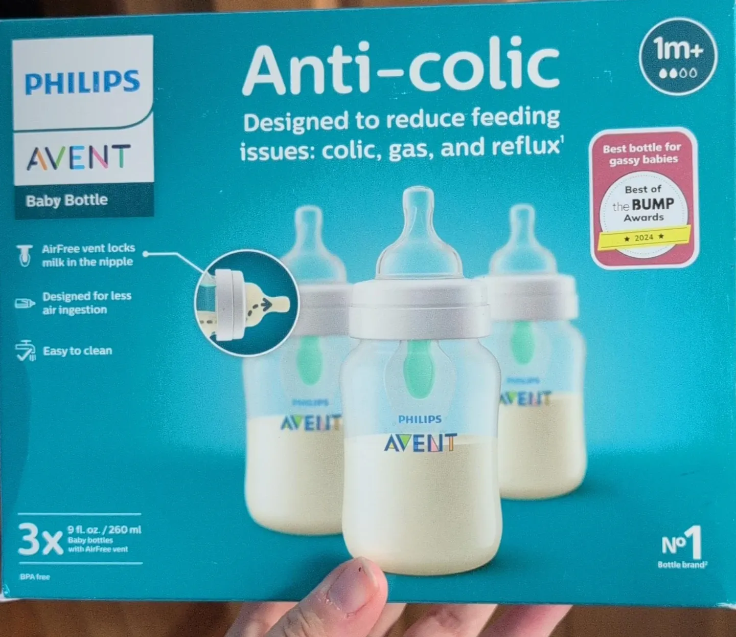 Philips Avent Anti-colic baby bottles designed to reduce feeding issues like colic, gas, and reflux. These 260 ml bottles feature an AirFree vent for less air ingestion and are easy to clean. BPA free. Brand new, never opened.