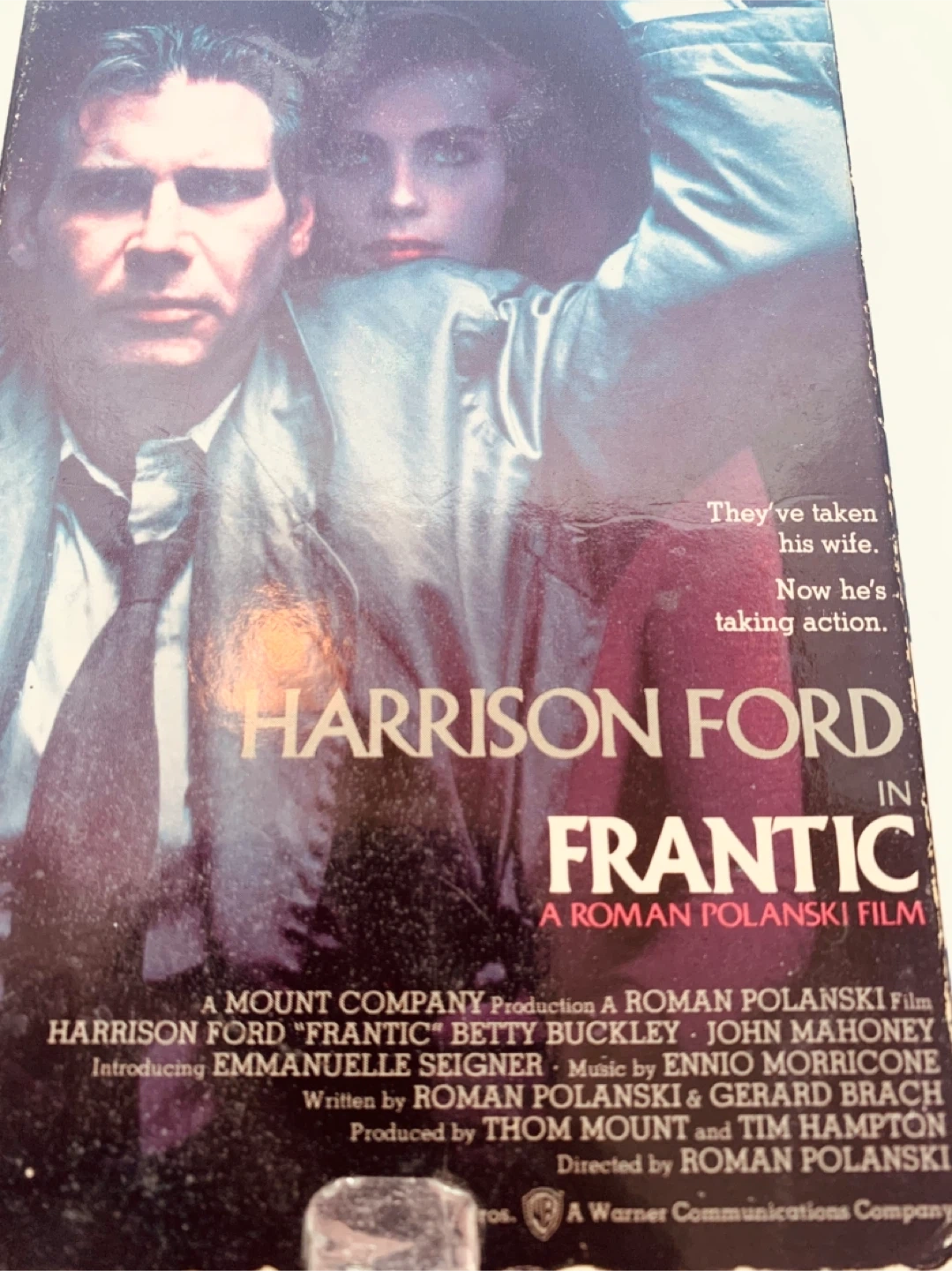Harrison Ford stars in Roman Polanski's thriller Frantic. This VHS tape features a suspenseful plot involving a doctor searching for his kidnapped wife in Paris. It's a classic film directed by Roman Polanski.