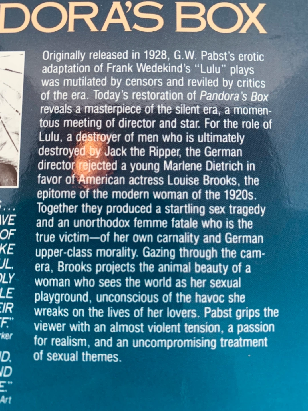 G.W. Pabst Pandora's Box VHS Tape - Louise Brooks