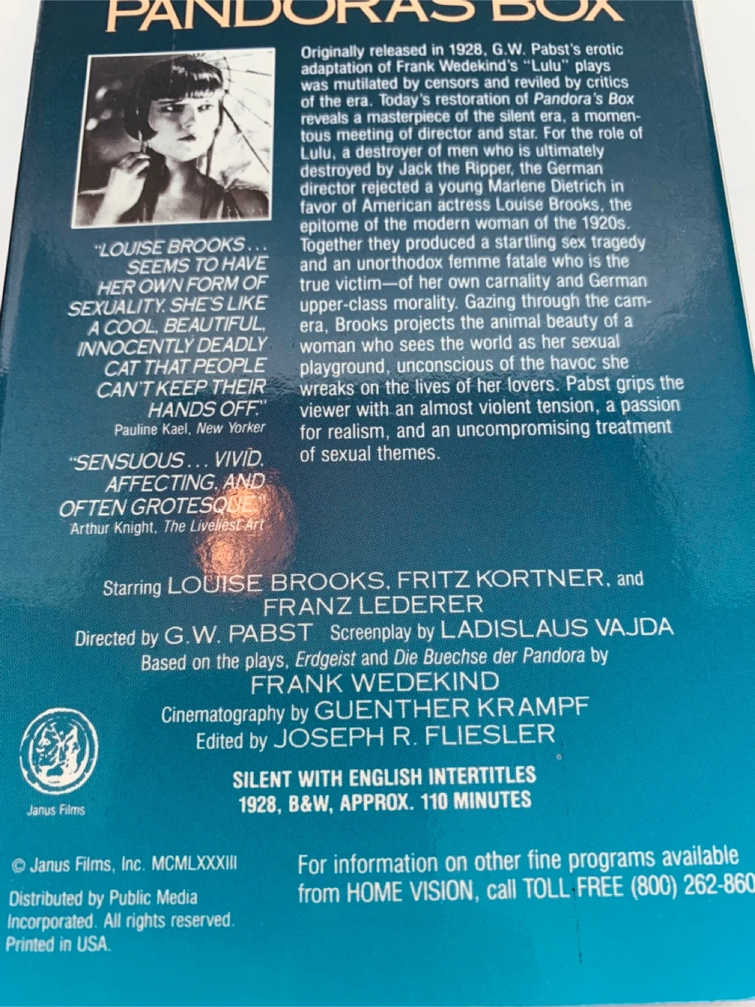 G.W. Pabst Pandora's Box VHS Tape - Louise Brooks