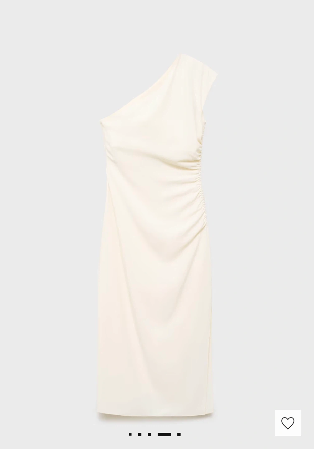 A cream one-shoulder ASYMMETRICAL PLEATED DRESS from Mango. Midi design. Fitted design. Asymmetrical neckline. Sleeveless. Side ruffles. Side slit. Side zip closure. Inner lining. Made in Vietnam. Size EUR S, USA 4, MEX CH.