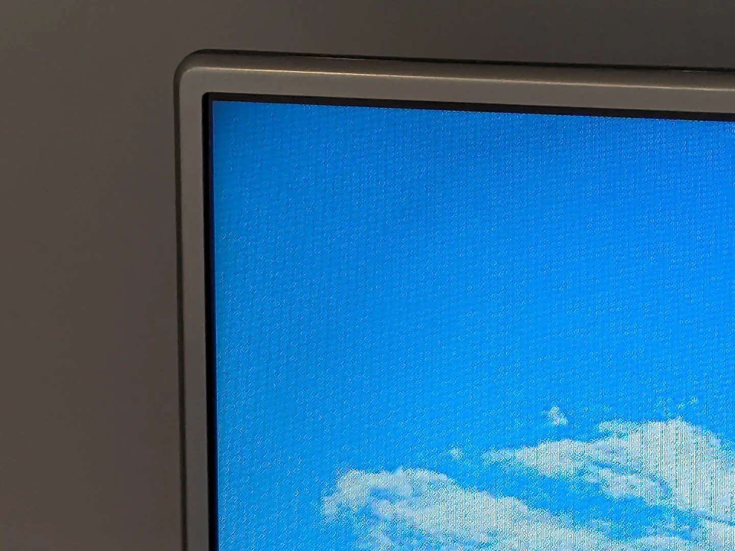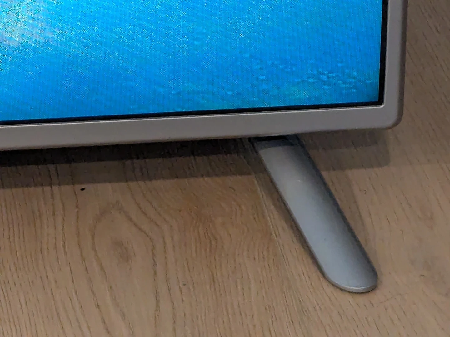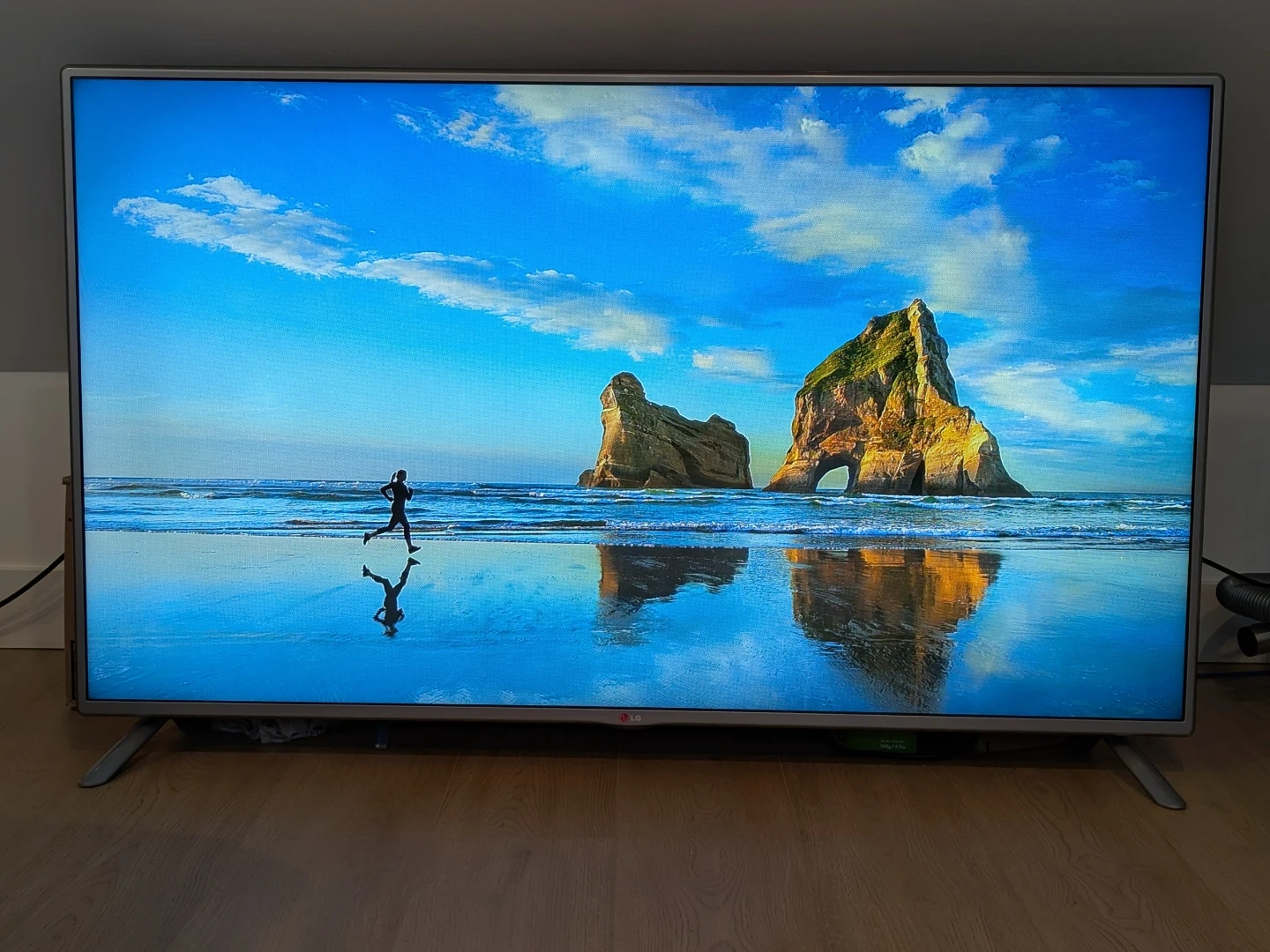 LG television with a silver frame and stand. It has a bright, clear display showing a scenic image. This TV is ready for your viewing pleasure!