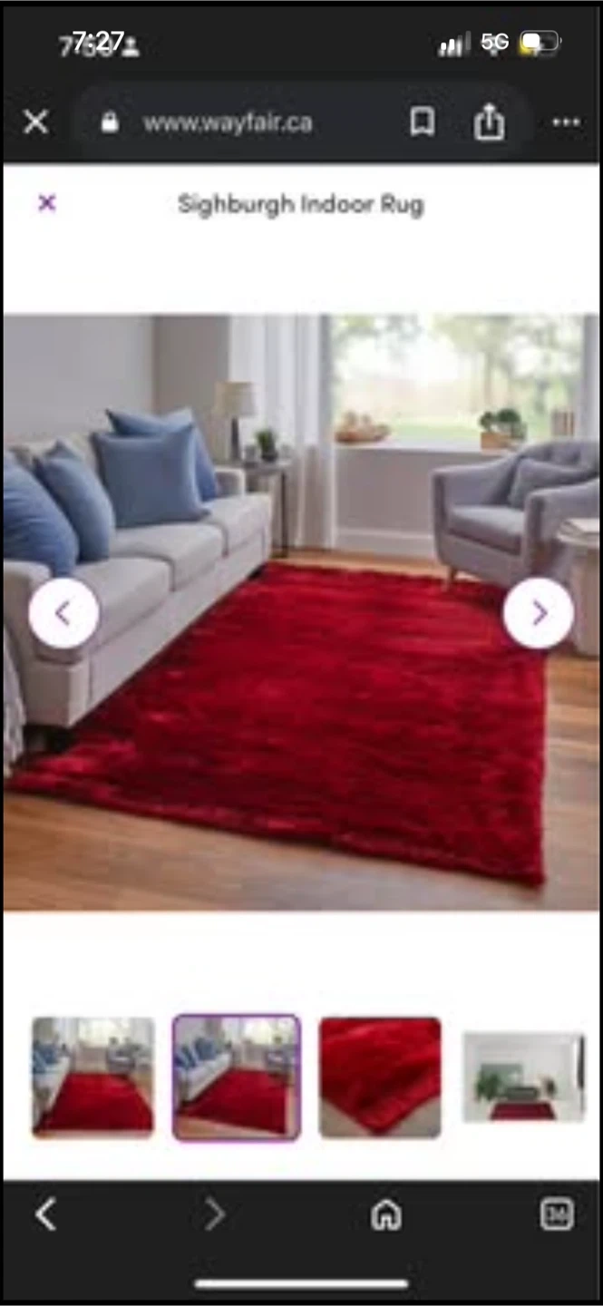 This is a red Sighburgh indoor rug. It's made of plush material, offering a soft feel underfoot. Perfect for adding a touch of warmth and colour to any room!
