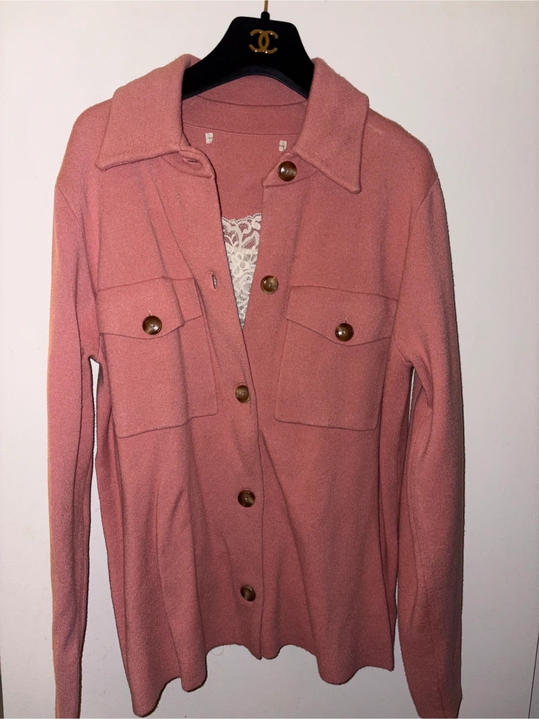 Pink Button-Up Shirt soft Jacket