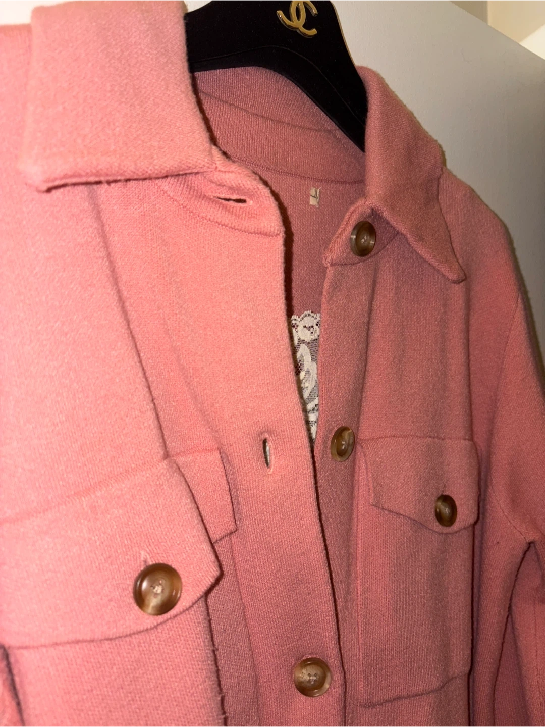 Pink Button-Up Shirt soft Jacket