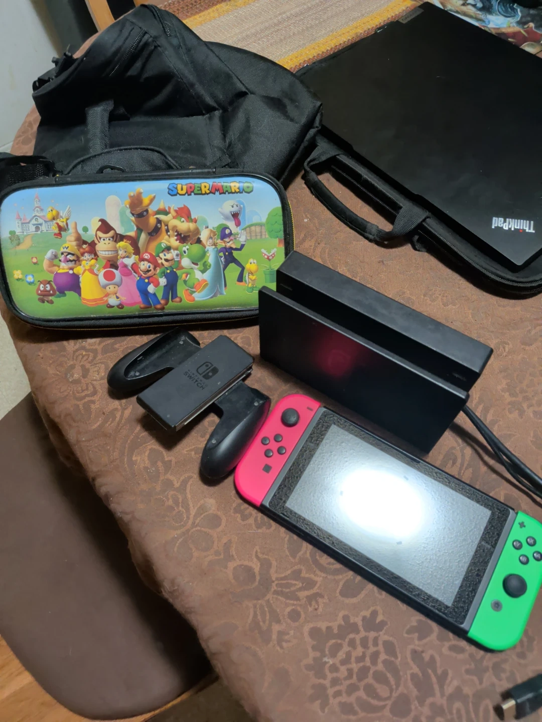 I'm Selling my old Switch because now I have a Switch 2 I no longer need it, it comes with an SD card. It works like new it has a bit of Sticker residue on the back of the Switch I cleaned most of it off at least and comes with the Switch Dock and the Joycon connecter and the HDMI cable with the power cord. And pick up only because I don't drive.
