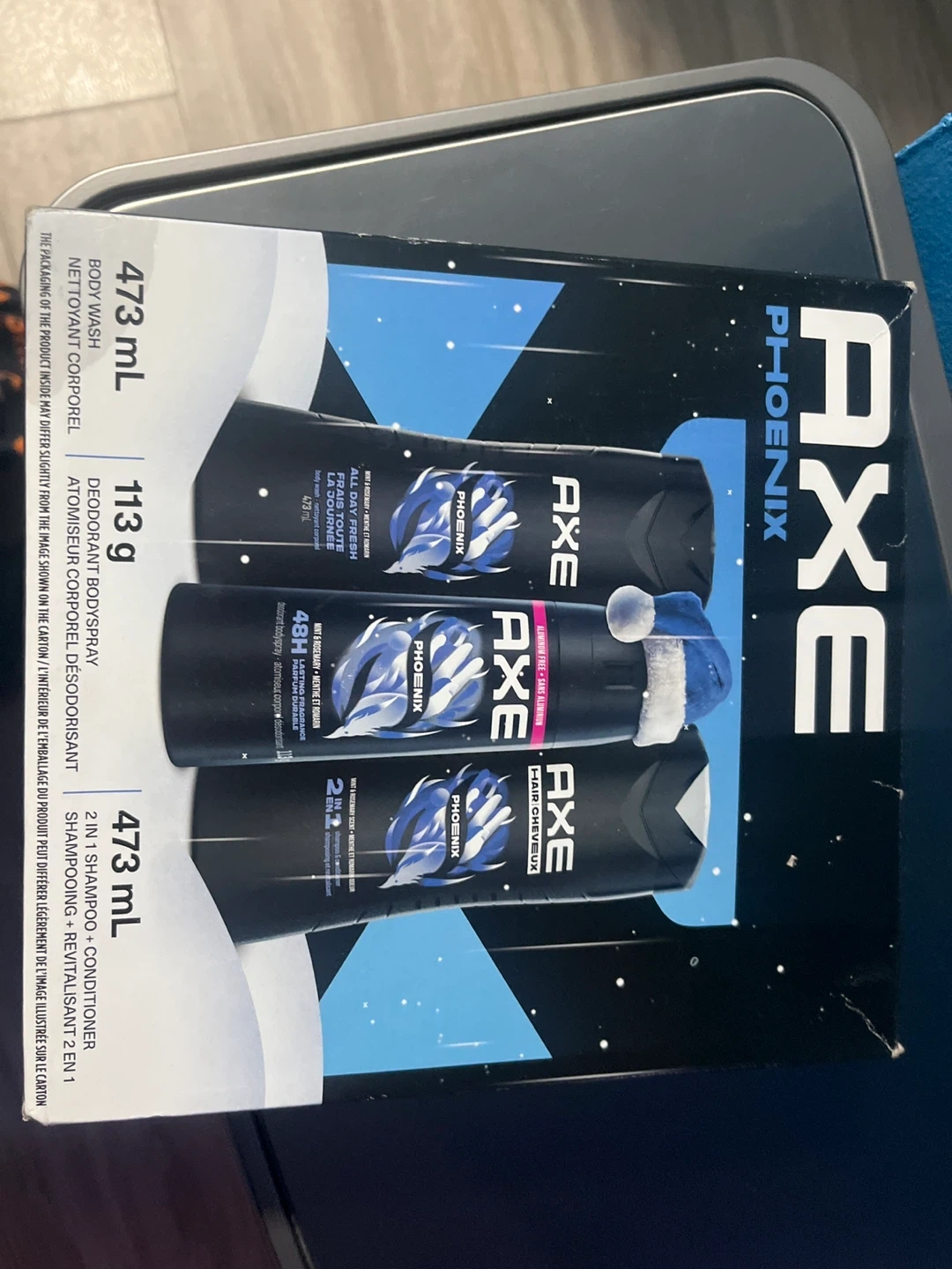 This Axe gift set includes body wash, deodorant body spray, and 2-in-1 shampoo + conditioner. All items are in the Phoenix scent. It's a great gift for anyone!