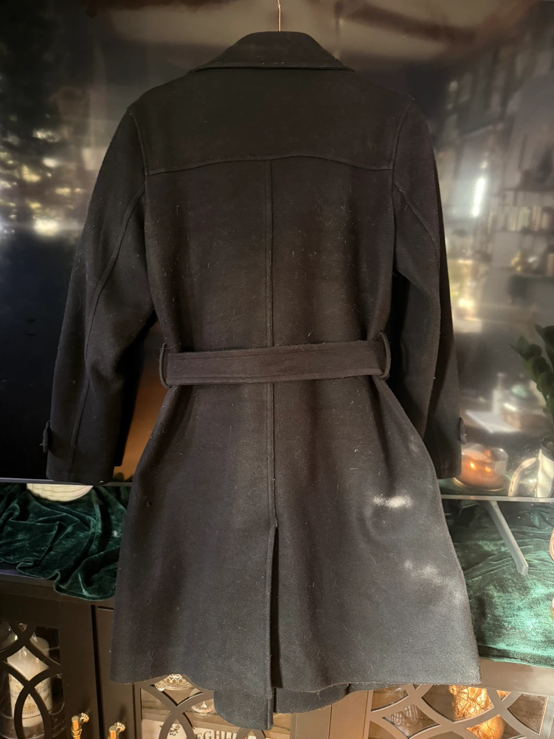 Joe Fresh black pea coat, size XS (fits much bigger). Features a belted waist and double-breasted closure. Perfect for transitional weather!