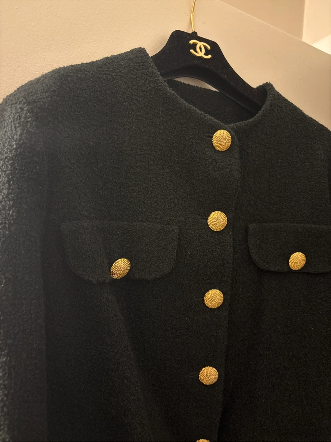 This United Colors of Benetton jacket is black and cropped. It features gold-tone buttons and front pockets. Made in Italy.