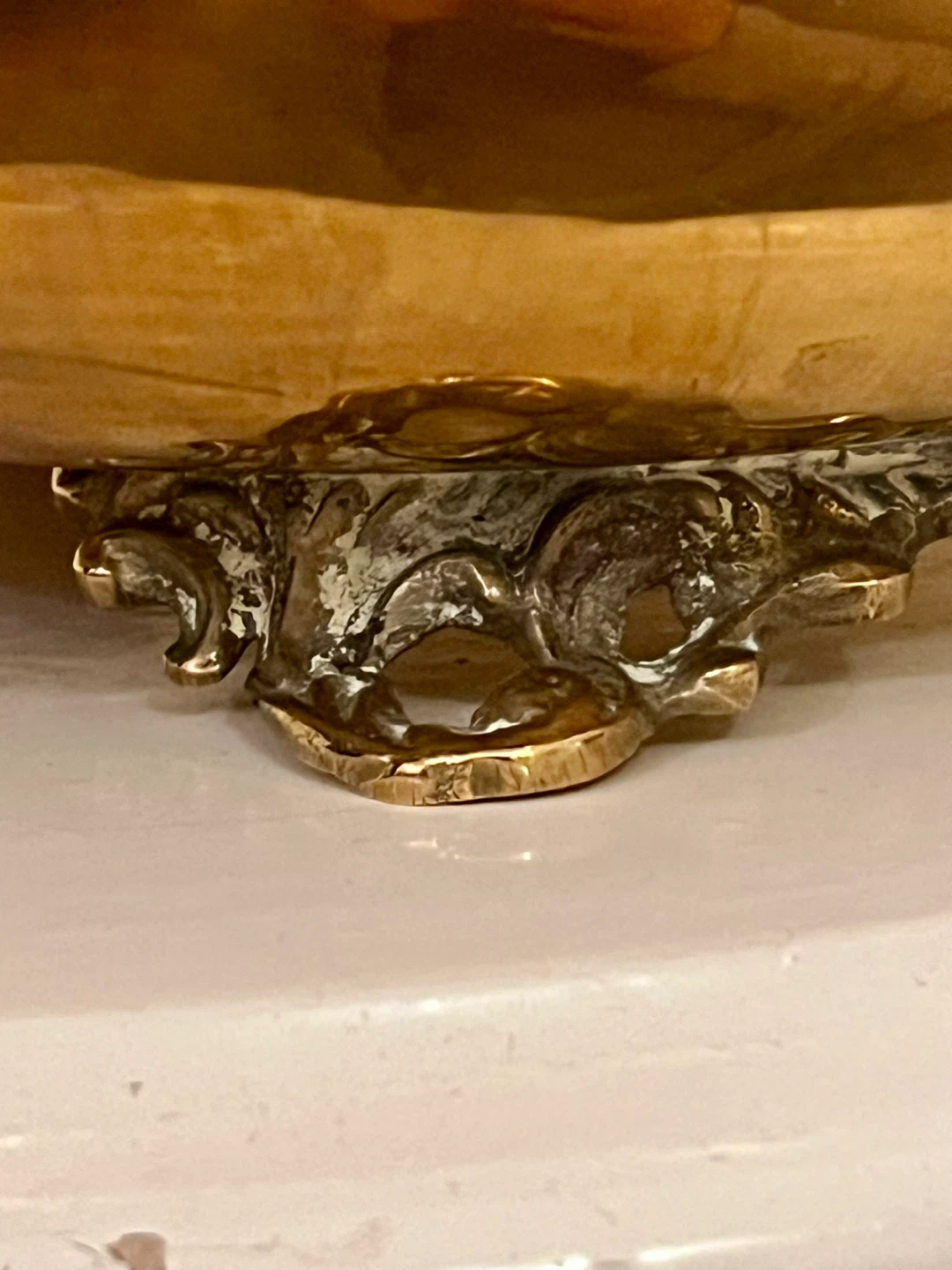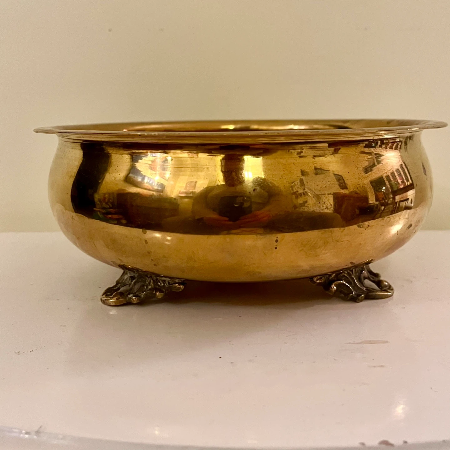 Beautiful mid-century low brass bowl - a jardinière or cachepot - with beautiful patina. Excellent vintage condition.
