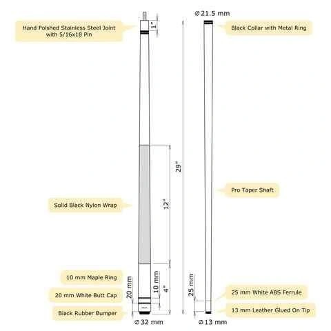 Pickup near Kipling-Steeles. Price is firm. Weight - 18Oz (19Oz, 20Oz available). Colour - Red (Green, Blue, Brown available). Tip - 13mm Hard Long Lasting Glued On Tip. Ferrule - 25mm White ABS Ferrule. Taper - Pro. Weight can be increased with weight bolts (set of 3 different weights - $10 additional).