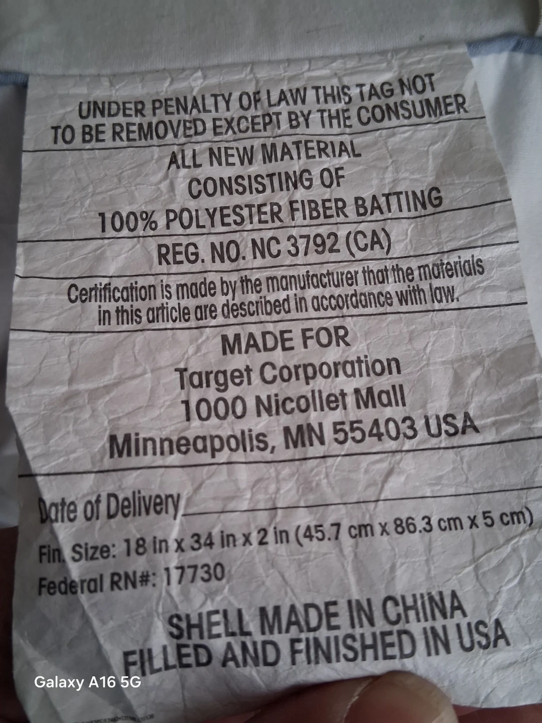 Set of two Made By Design pillows. Shell made of 100% polyester fiber batting. Each pillow is 18 inches by 34 inches. Filled and finished in the USA.