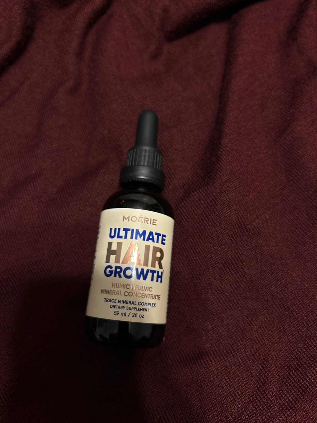 Möerie Ultimate Hair Growth is a humic and fulvic mineral concentrate. It's a trace mineral complex and dietary supplement. Recommended use: Dilute 40 drops (2.0ml) daily in purified water, fruit or vegetable juice. Store dry, closed, below 77°F (25°C). I used it for 2 months but i stopped because i got the results from the first bottle