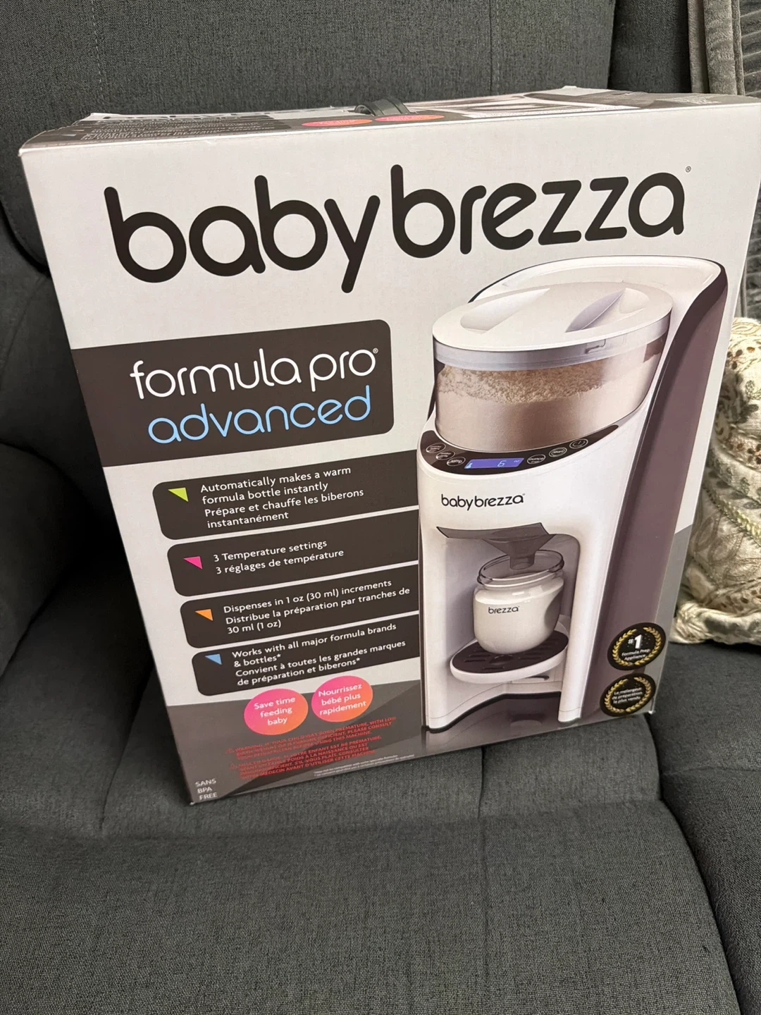 This Baby Brezza Formula Pro Advanced automatically makes a warm formula bottle instantly. It dispenses in 1 oz increments and works with all major formula brands and bottles. It offers 3 temperature settings, saving you time when feeding your baby.
