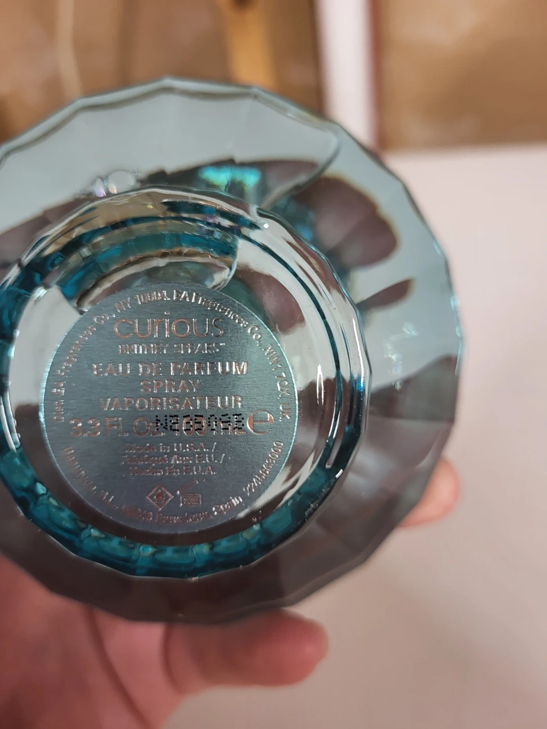 Britney Spears Curious Eau de Parfum spray for women. It's a 3.3 fl. oz. bottle of fragrance. This perfume comes in a vibrant blue glass bottle.