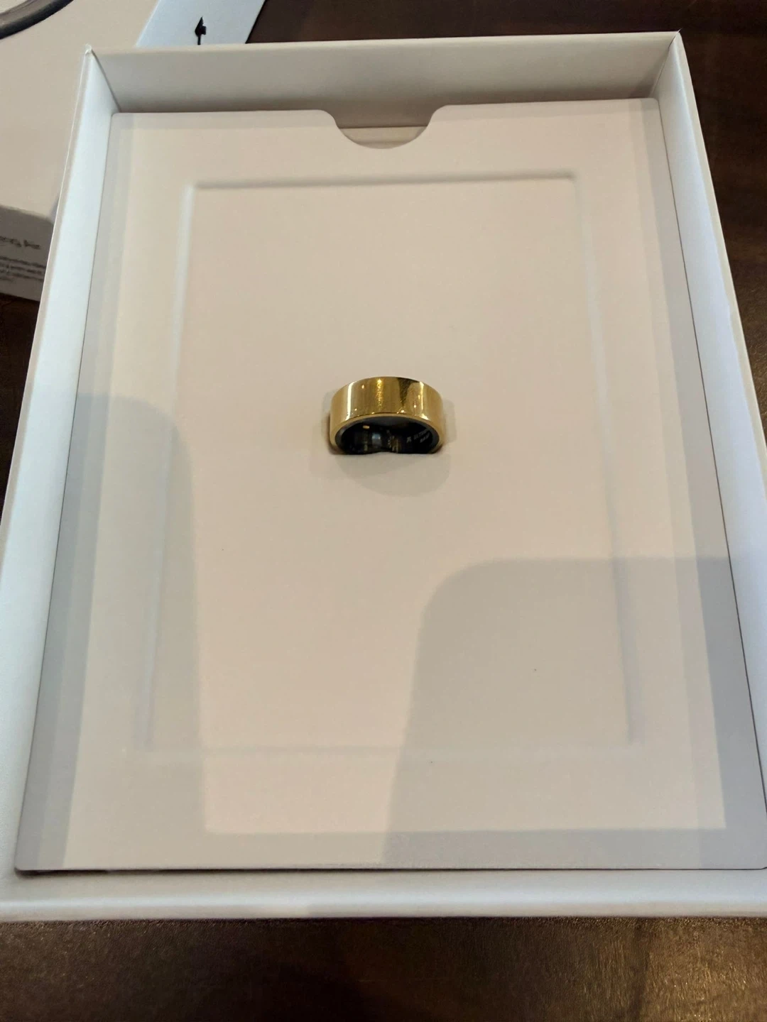 This is an Ultrahuman smart ring. It's designed for health and sleep tracking. The ring comes in a gold finish. Size 7