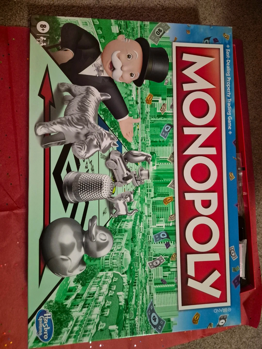 Classic Monopoly board game with all tokens, dice, houses, and money included. It's the fast-dealing property trading game everyone knows and loves. Perfect for family game nights! 8+ everything is in its original bag. Completely new.