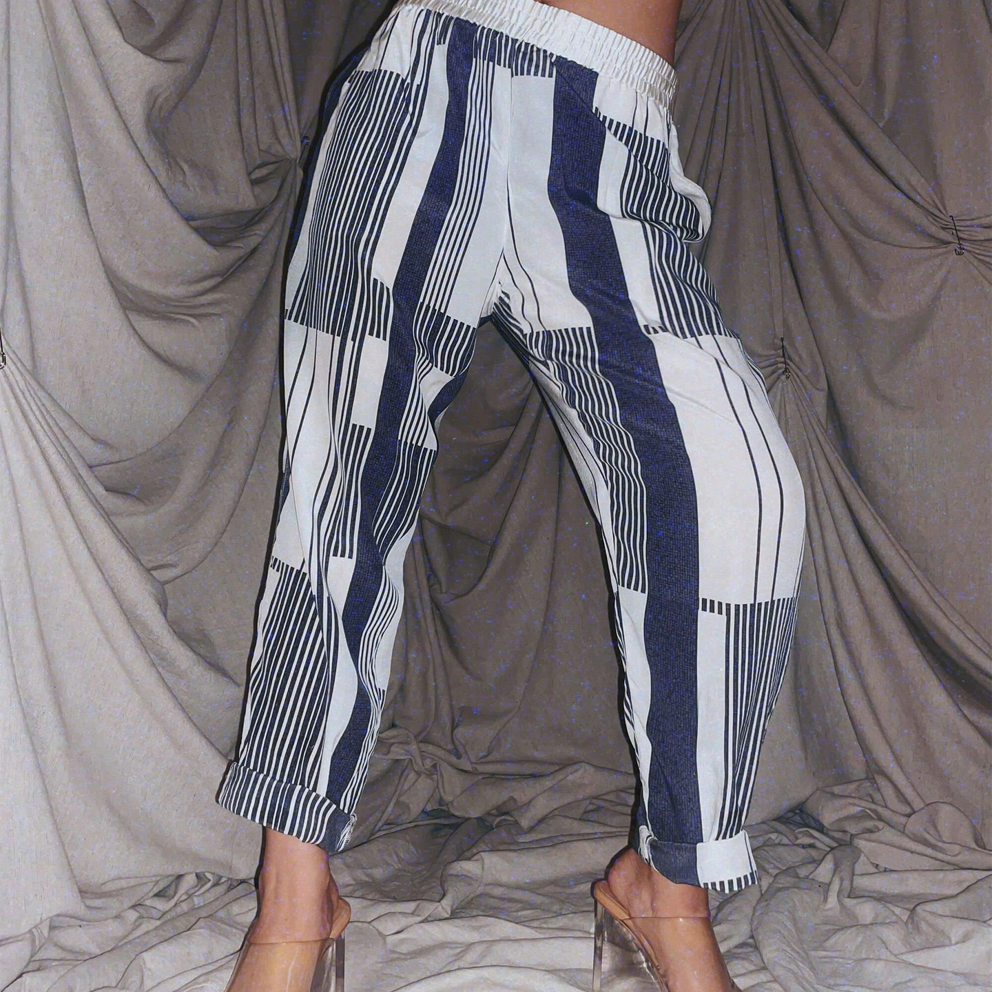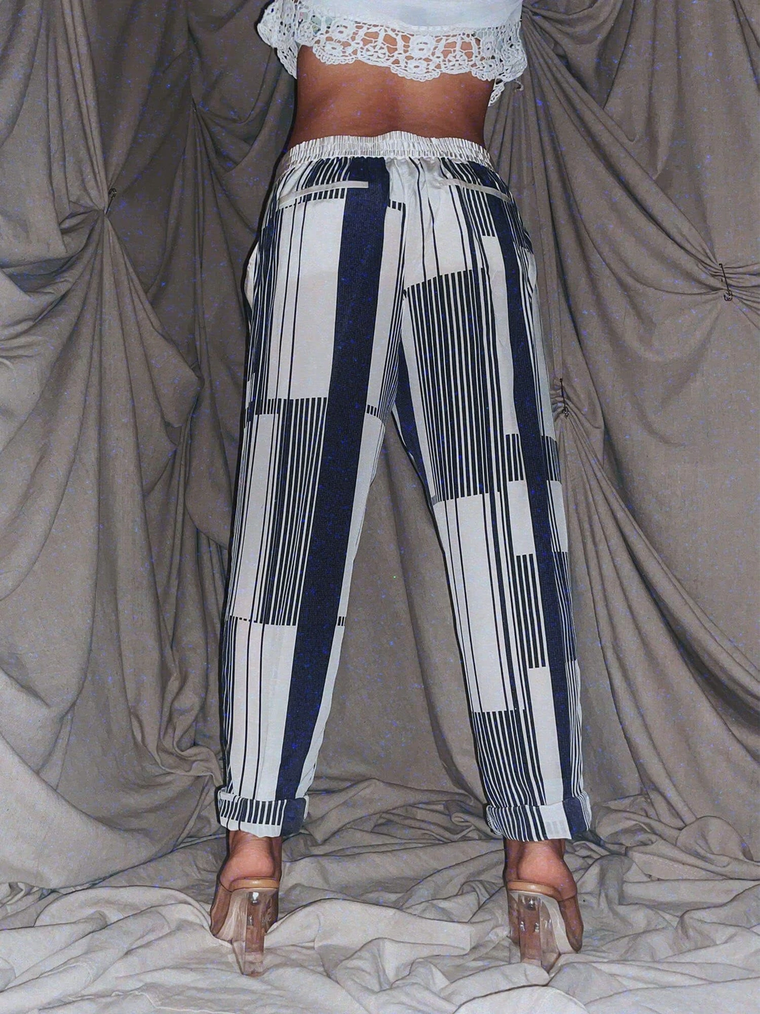 white blue plaid silk joggers ★ light summer pants