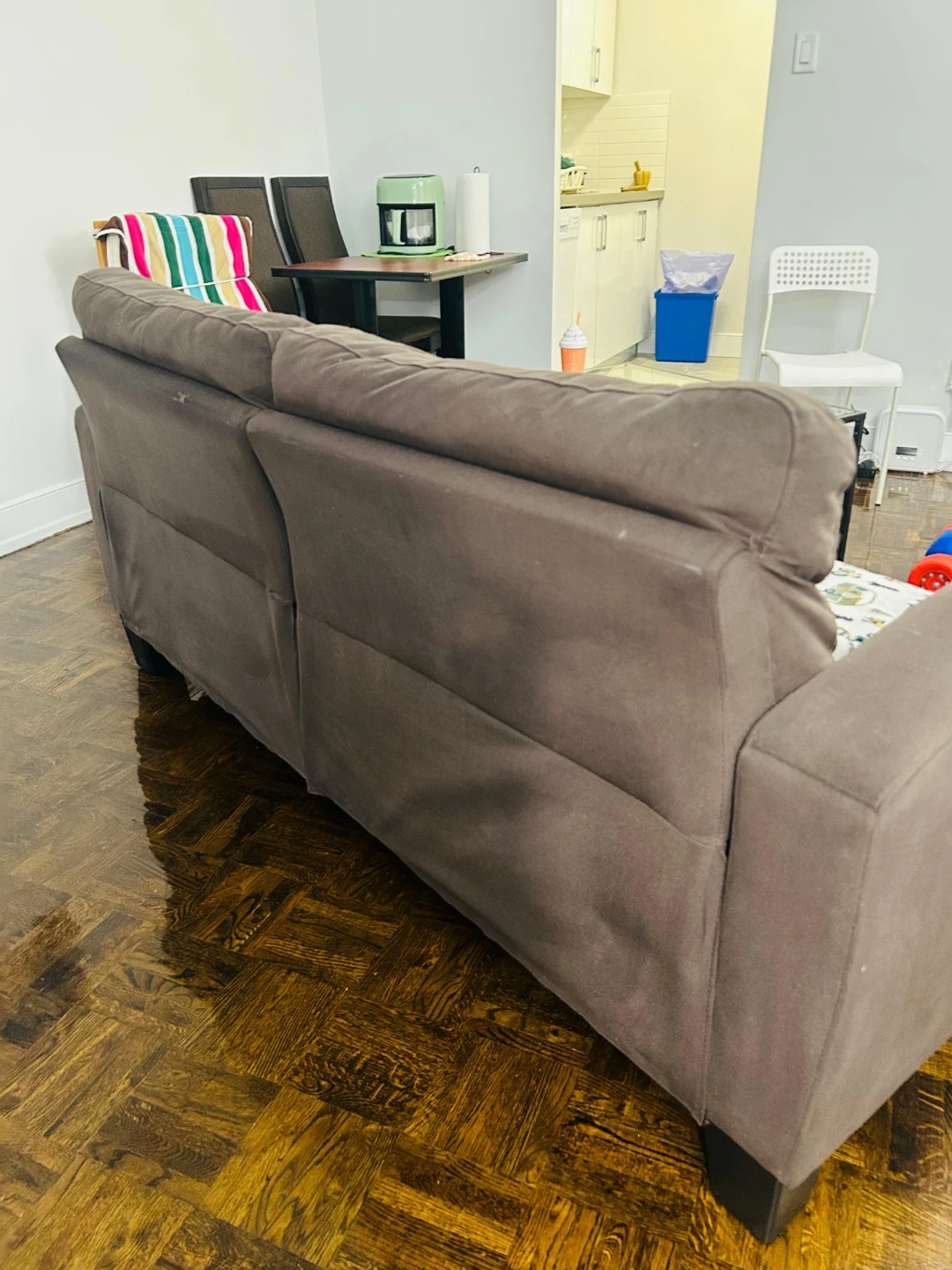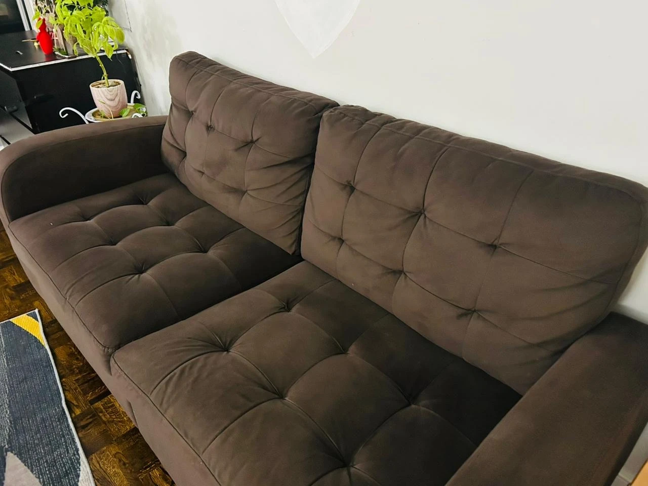It's a two-seater couch.Used sofa in excellent condition. Very soft, comfortable, and well maintained. No damages, stains, or tears. From a pet-free home.