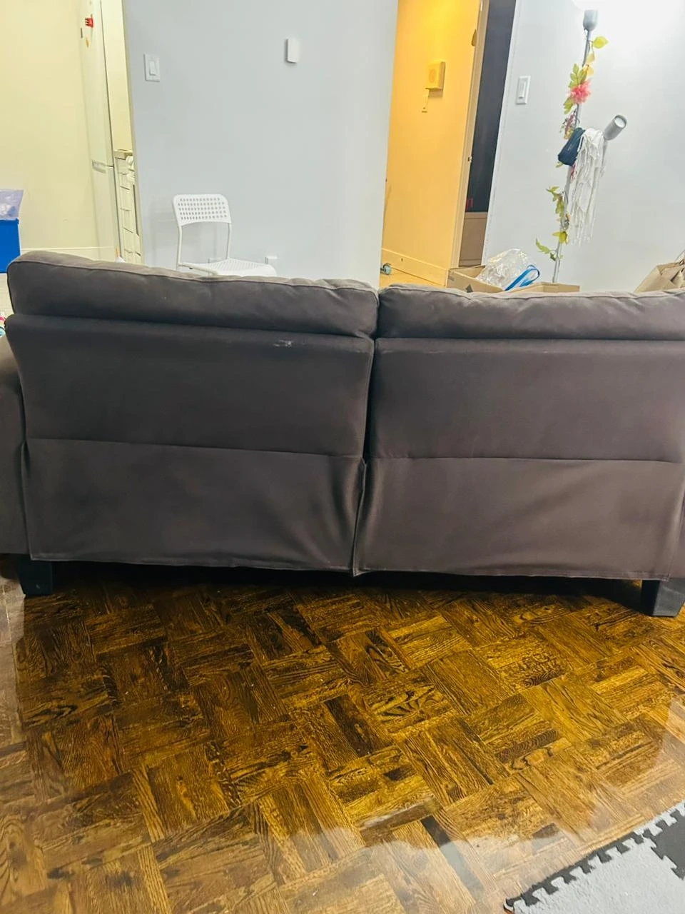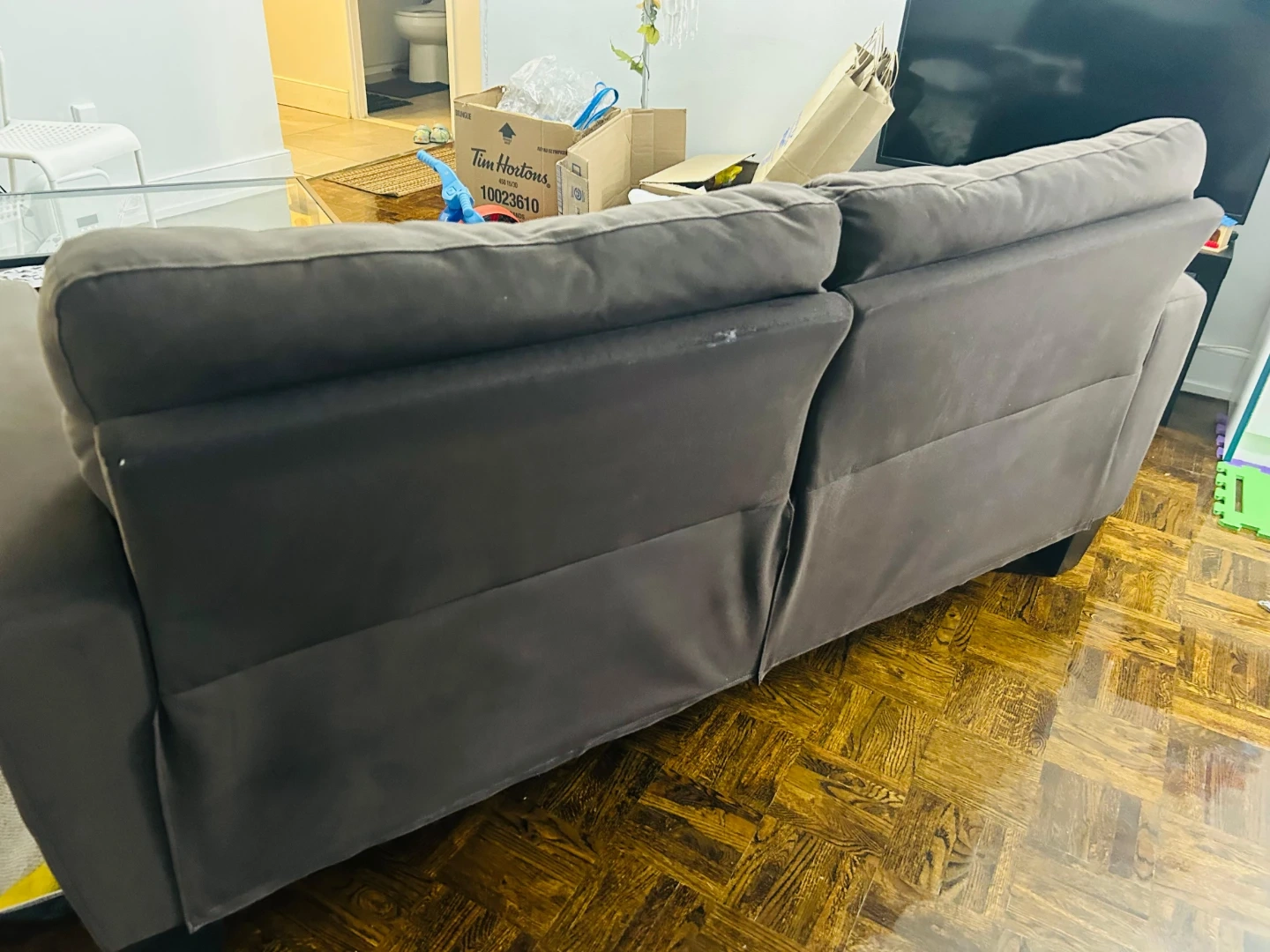 It's a two-seater couch.Used sofa in excellent condition. Very soft, comfortable, and well maintained. No damages, stains, or tears. From a pet-free home.