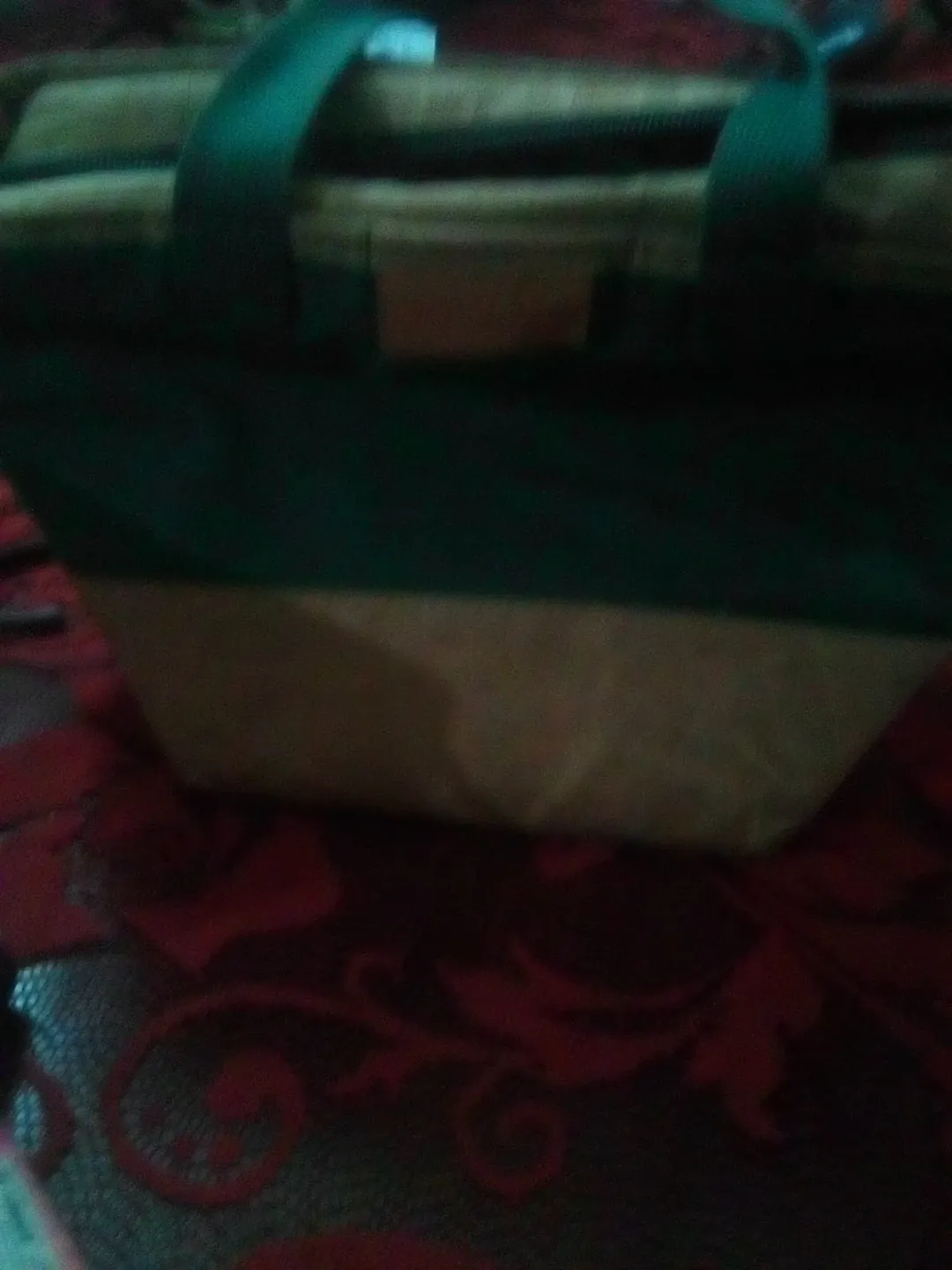 This insulated lunch bag has a zipper closure and two handles. It's made of durable fabric in a two-tone design. Perfect for carrying your lunch.