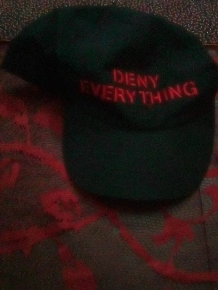 Dark Green Baseball Cap with "Deny Everything" Embroidery