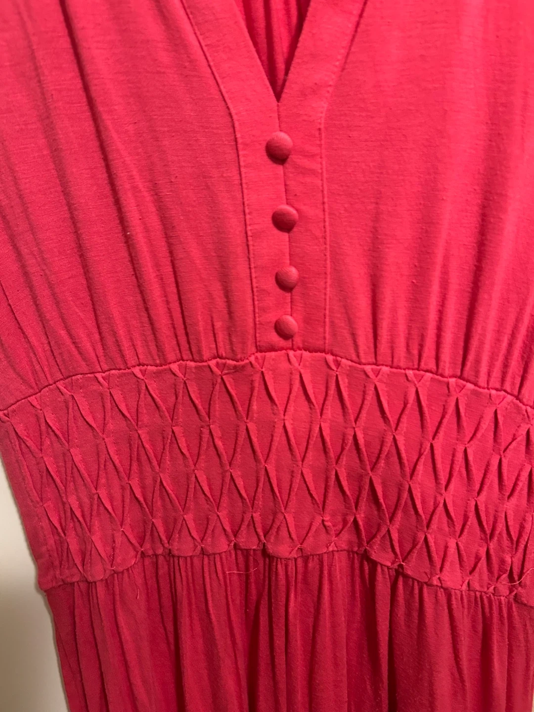 This sleeveless pink dress from DESIGN HISTORY features a flattering V-neck with button details and a smocked waist. Made with a blend of 95% viscose and 5% spandex for comfort and stretch. It's a versatile piece perfect for everyday wear!
