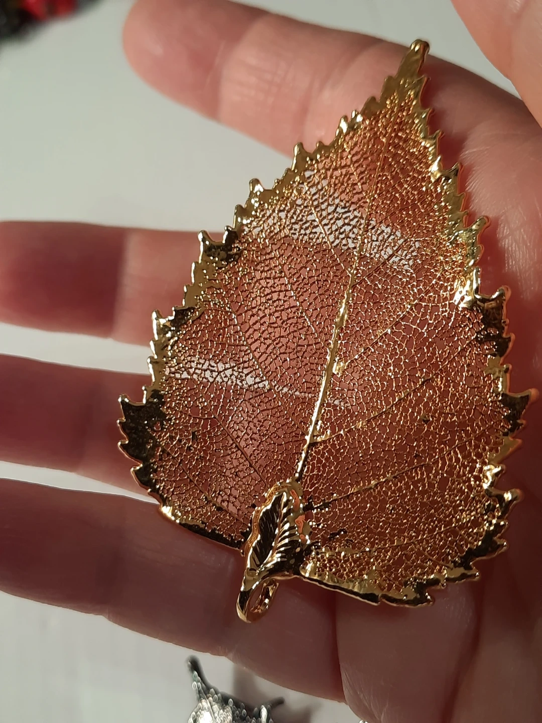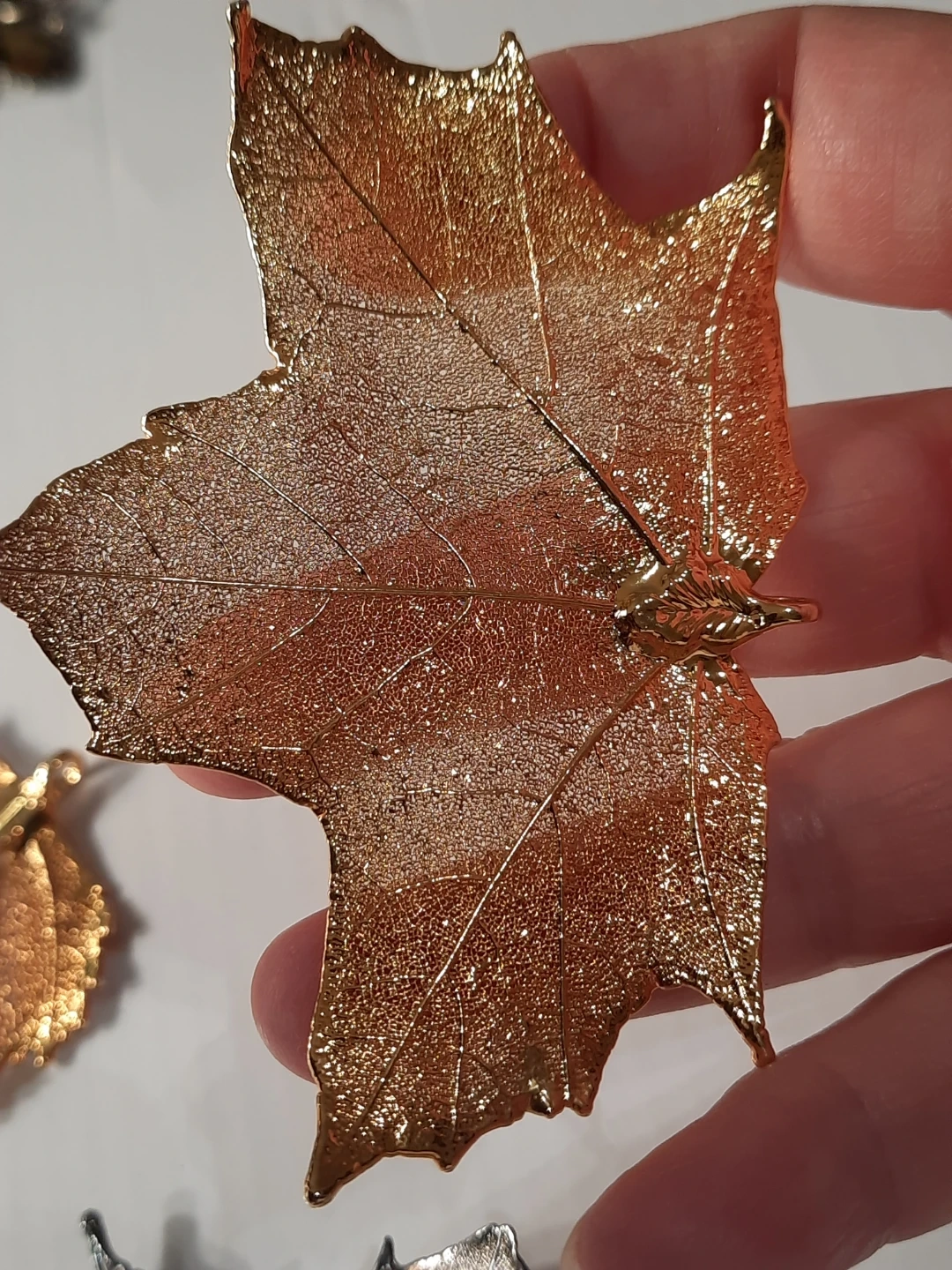 Three beautiful fall leaf pendants or ornaments, perfect for seasonal decor. Includes two gold leaves and one silver maple leaf. These add a lovely touch to any autumn display!just add a chains to them.