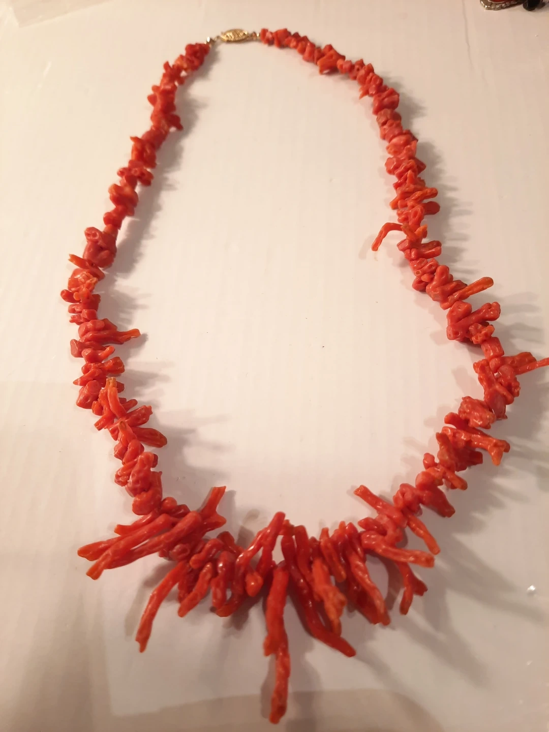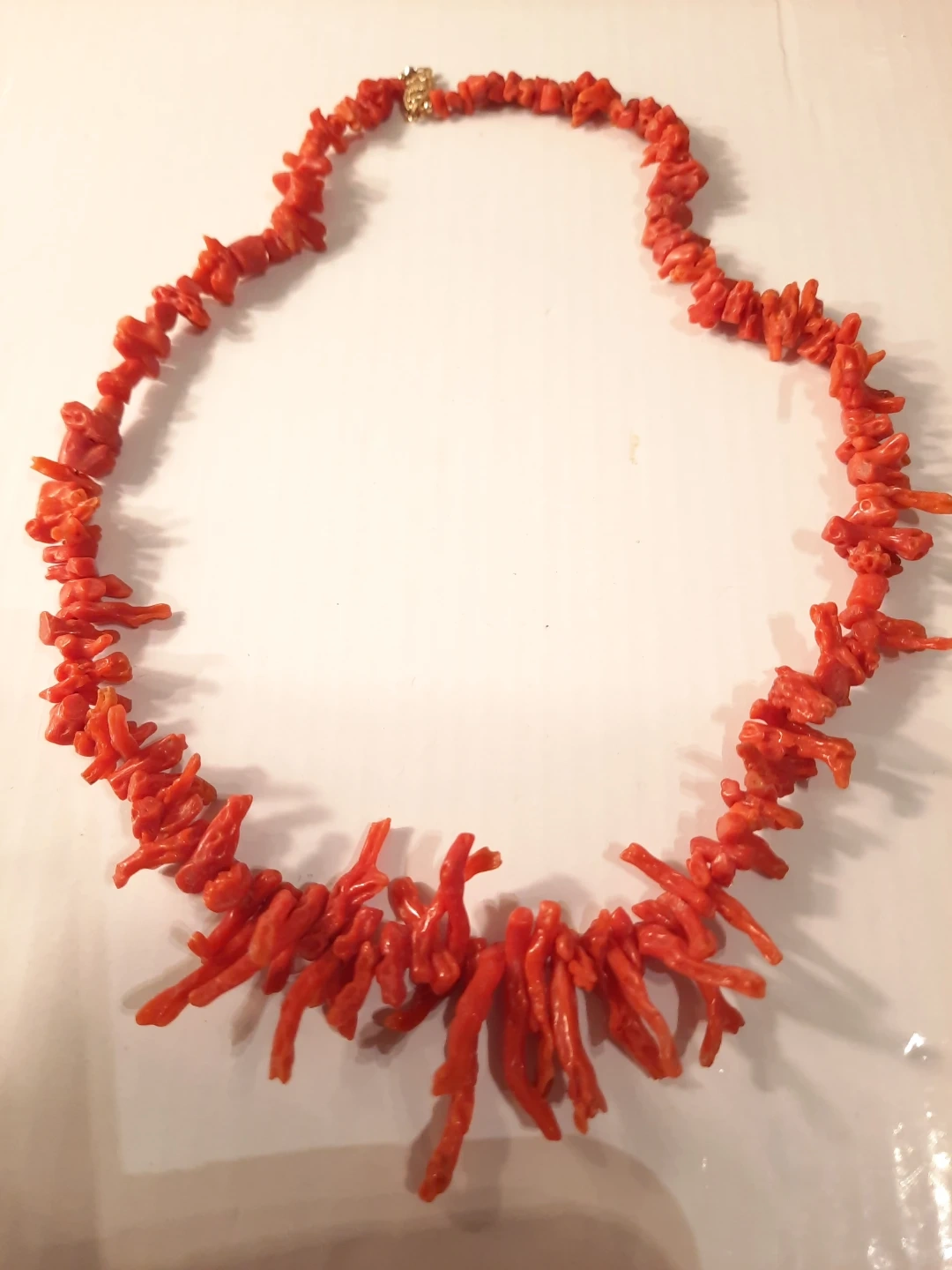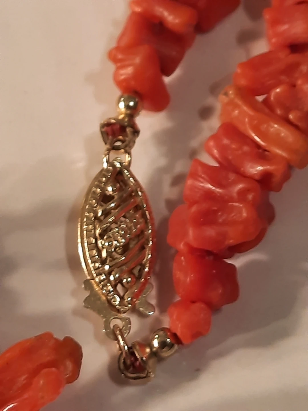 A unique necklace featuring natural coral branches. It's crafted with a 14K gold clasp,solid gold . This piece adds a touch of natural elegance to any outfit!