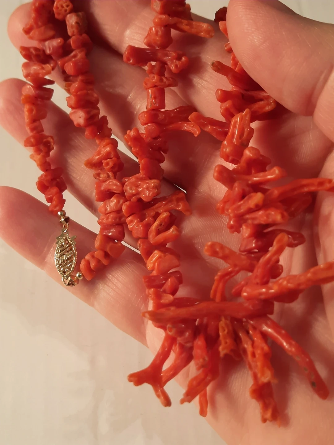 A unique necklace featuring natural coral branches. It's crafted with a 14K gold clasp,solid gold . This piece adds a touch of natural elegance to any outfit!