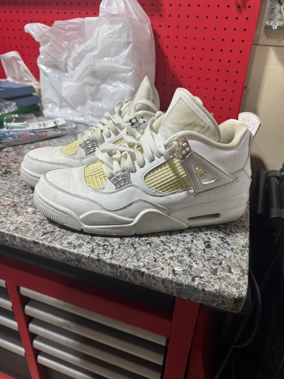 Buy & SellAir Jordan 4 White Yellow SneakersAir Jordan 4 White Yellow Sneakers$19Just took these out of storage don’t fit me anymore.BrandAir JordanWHERE TO MEETCheck LocationView MapSELLERBobWoodbridge301 review4 chats·1 favorites·30 viewsSEND CHAT TO SELLERHi Bob! I’m interested in your listing.Hi Bob! I’m interested in your listing.Get the Karrot app to chatSign In to chat