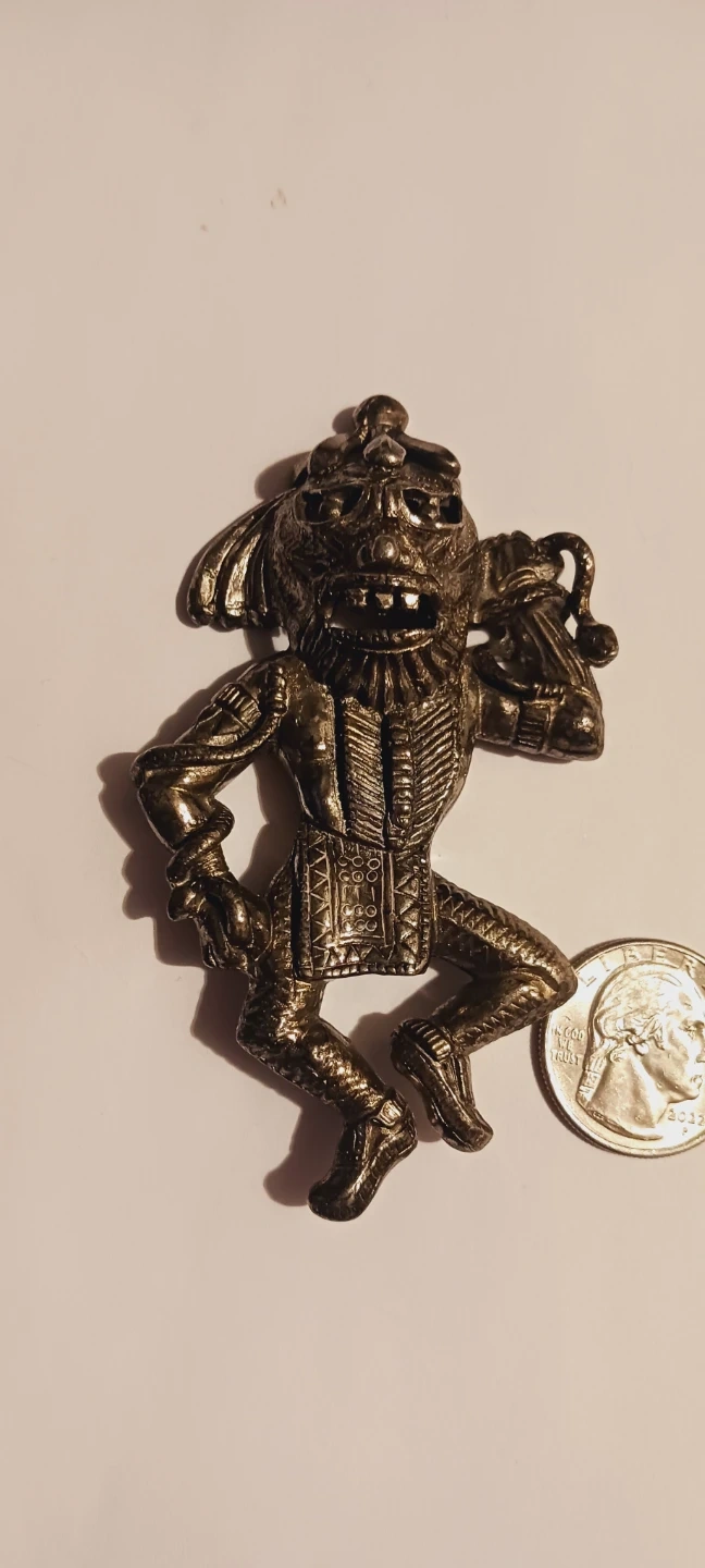 Unique Vintage Large Tribal Pendant. It's detailed with intricate clothing and a playful pose. It's a unique accessory for collectors. 4"×2". ALL MY PRICES ARE NEGOTIABLE !!