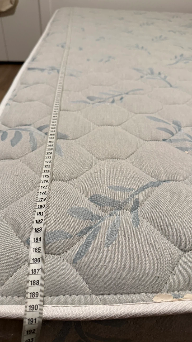 This is an IKEA Kalif Comfort Firm mattress. The material is soft and breathable with a nice leaf pattern. It offers good support for a comfortable sleep!