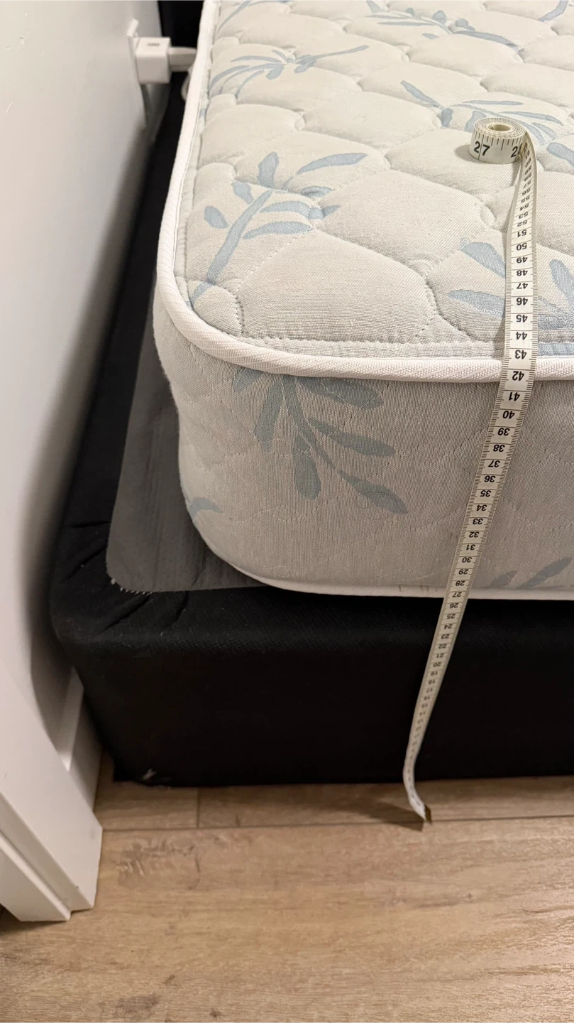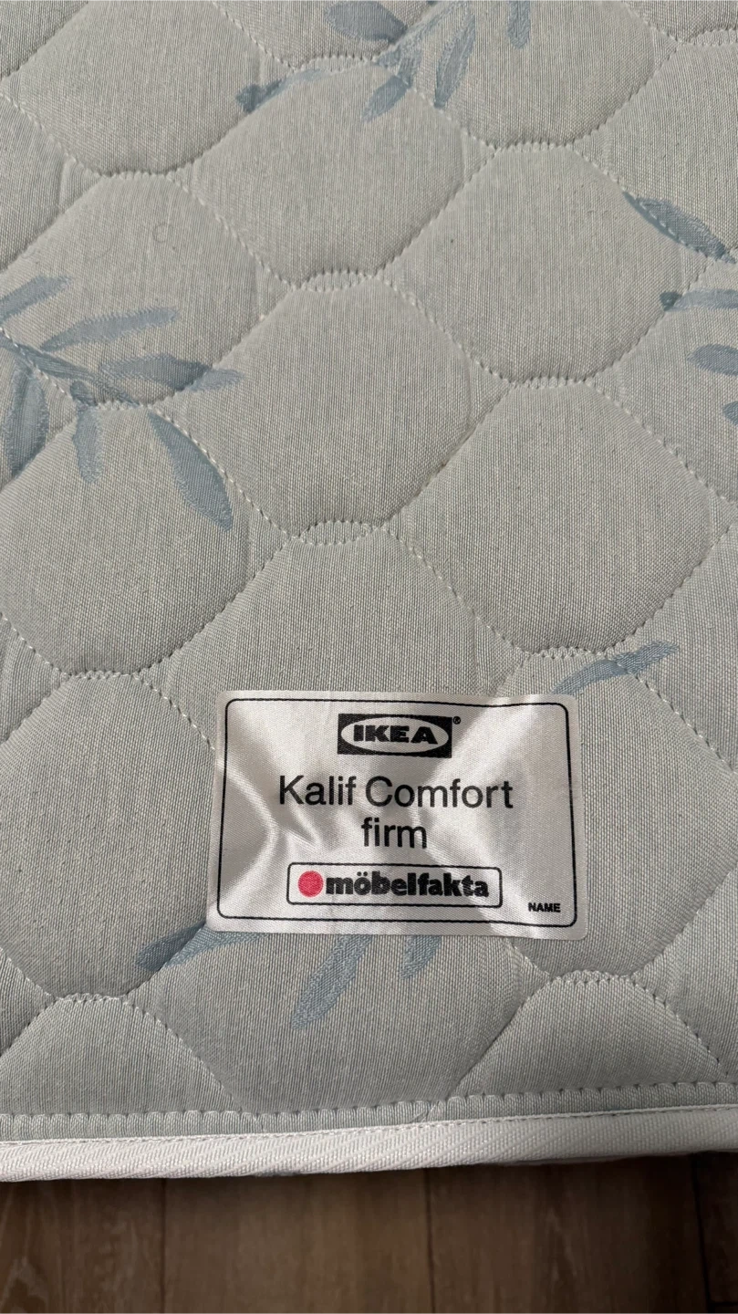 This is an IKEA Kalif Comfort Firm mattress. The material is soft and breathable with a nice leaf pattern. It offers good support for a comfortable sleep!