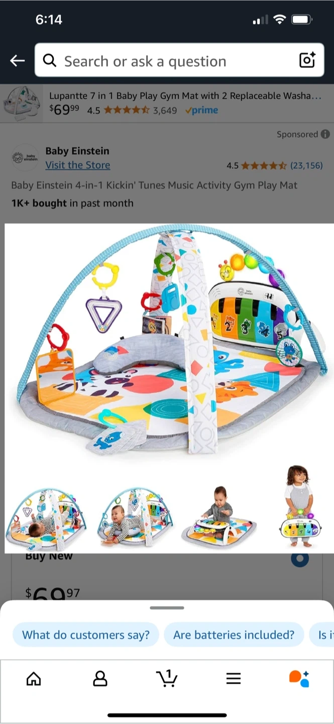 This Baby Einstein play mat offers 70+ sounds and activities, with 25+ minutes of music. It's designed for ages 0-36 months, featuring a tummy time pillow and sensory learning book. The toy bars have multiple languages available.
