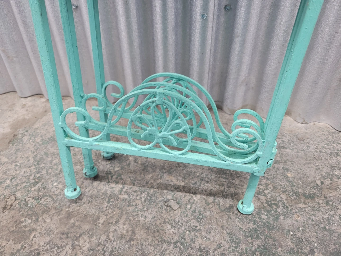Turquoise Metal and Wood Tiered Plant Stand