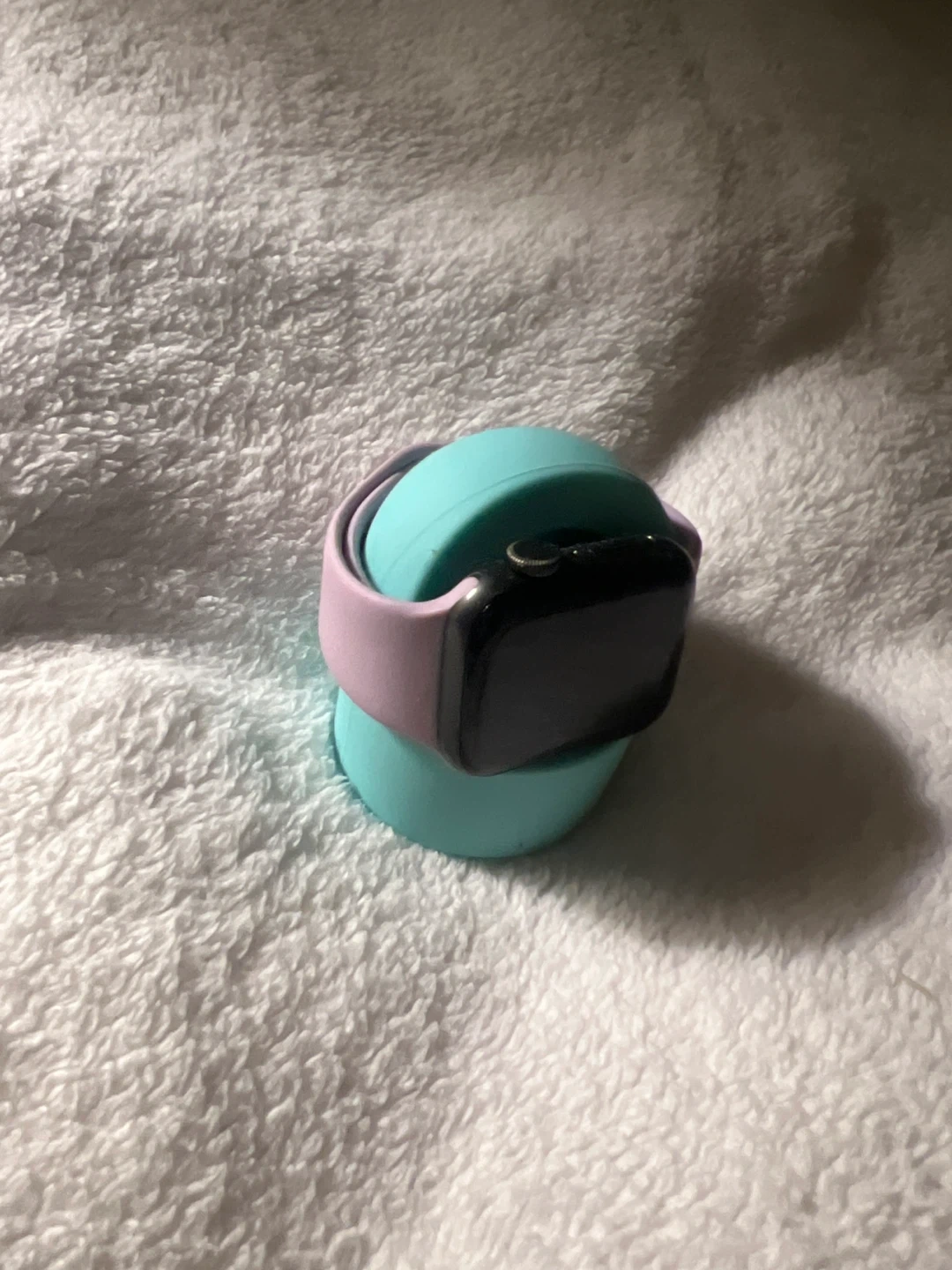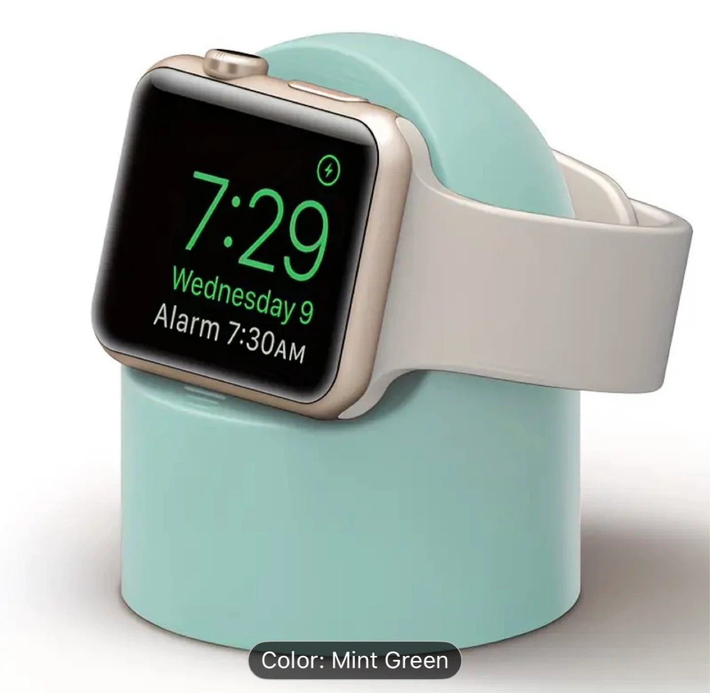 This mint green charging stand is perfect for your Apple Watch. It's made of soft silicone for a secure fit. Simply place your watch on the stand for easy charging.