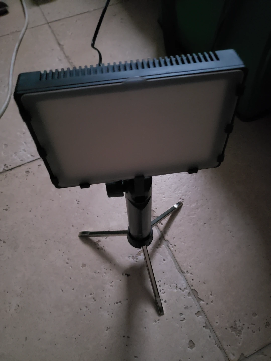 This is a compact LED video light panel. It includes a small tripod stand. It's great for photography or video lighting setups... only cash 💸