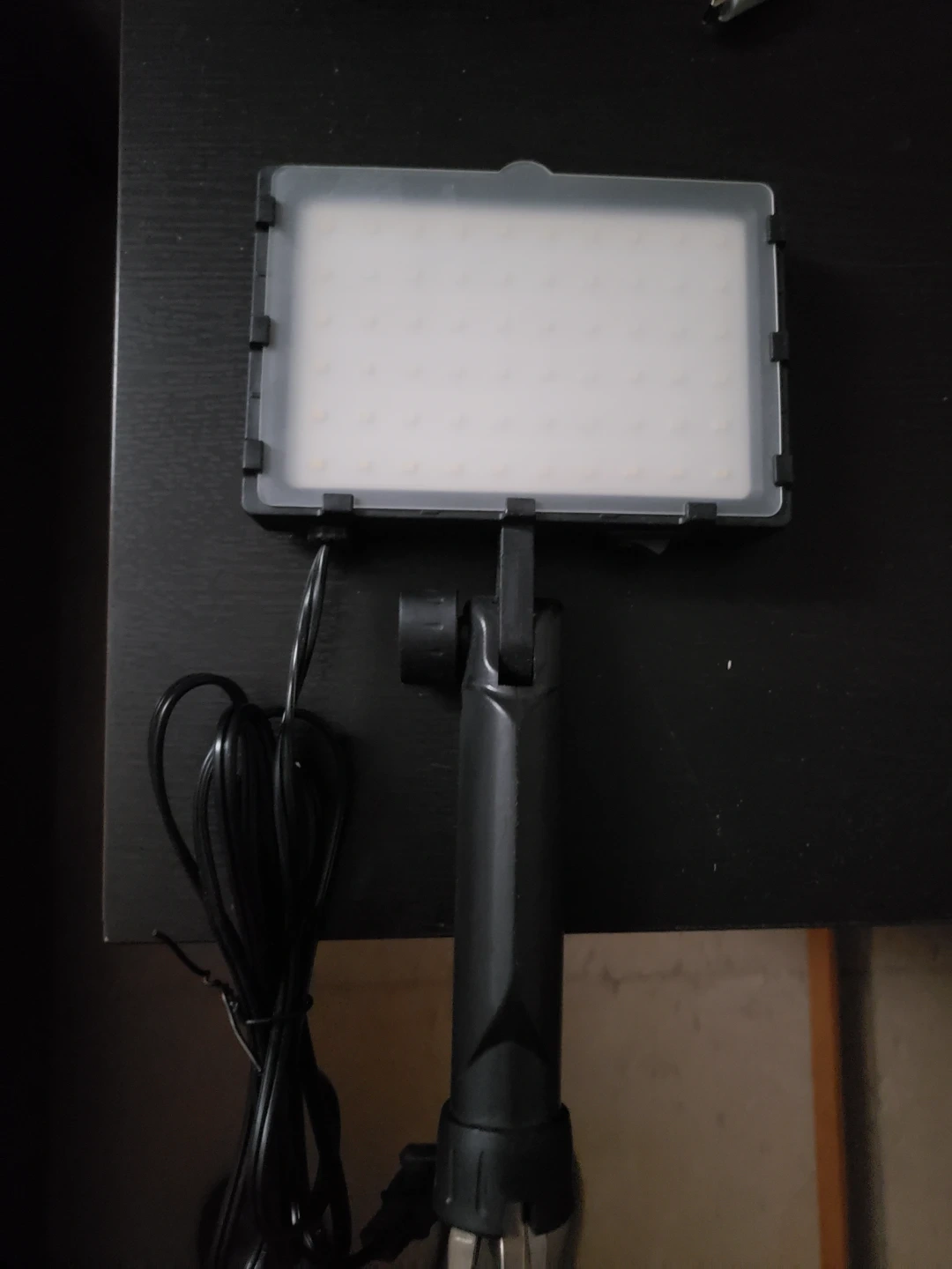 This is a compact LED video light panel. It includes a small tripod stand. It's great for photography or video lighting setups... only cash 💸